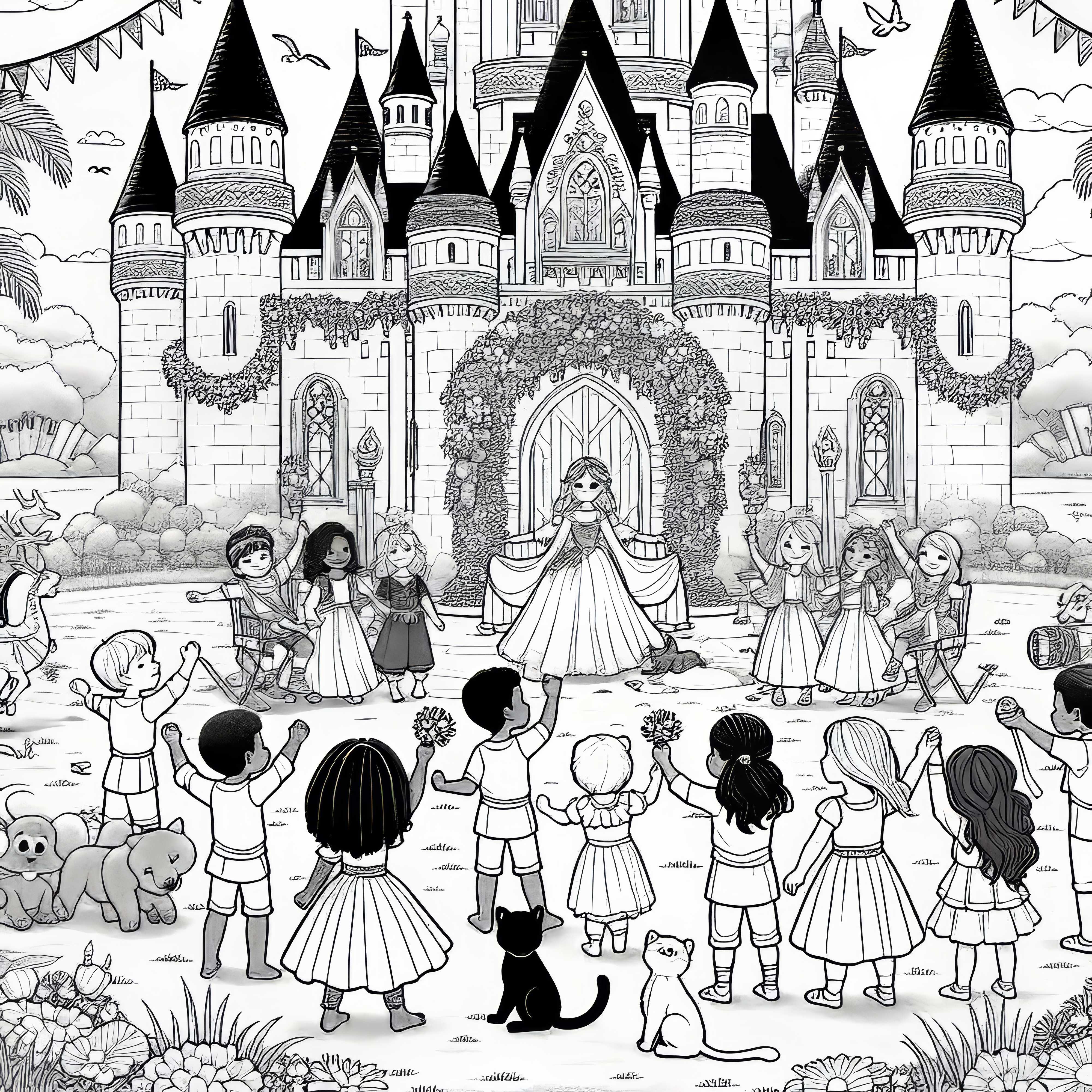 En prinsesse på vej til eventyrslottet - Malebillede til farvespil
