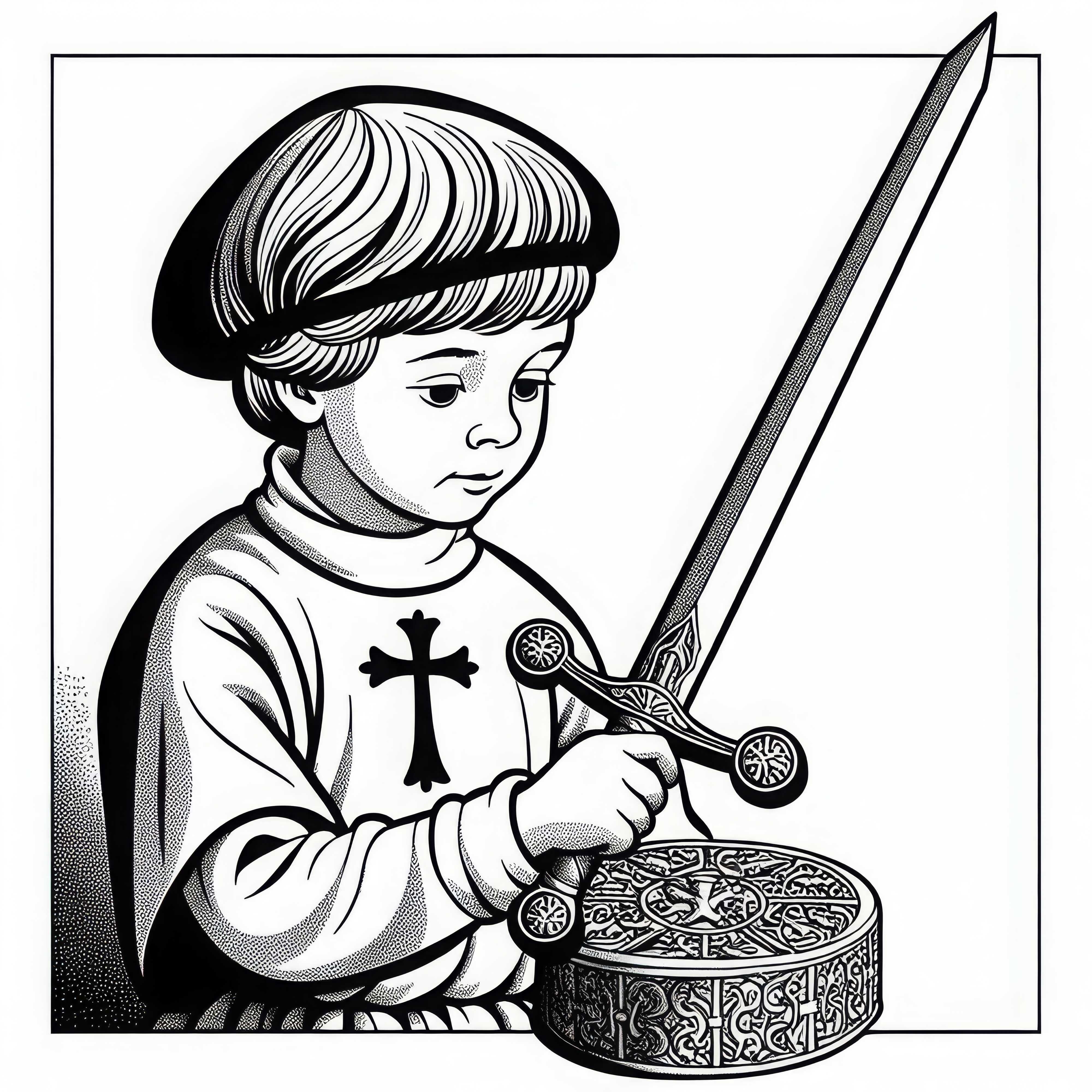 Barnet observerer forberedelsen til et ridderkorstog - Malebillede til korstogene gratis