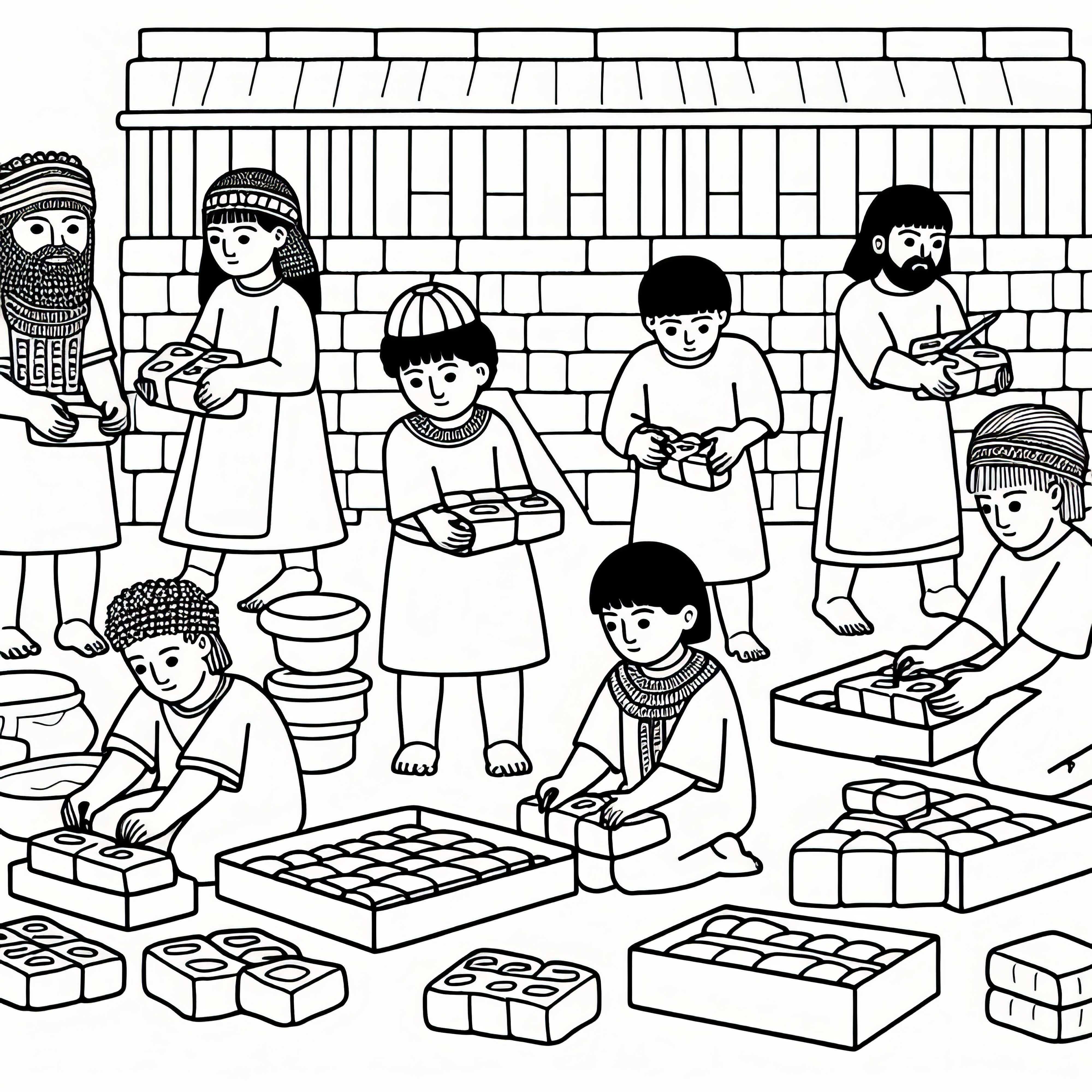 Børn bygger en lille mur af lerblokke - Malebillede af de ældste civilisationer gratis
