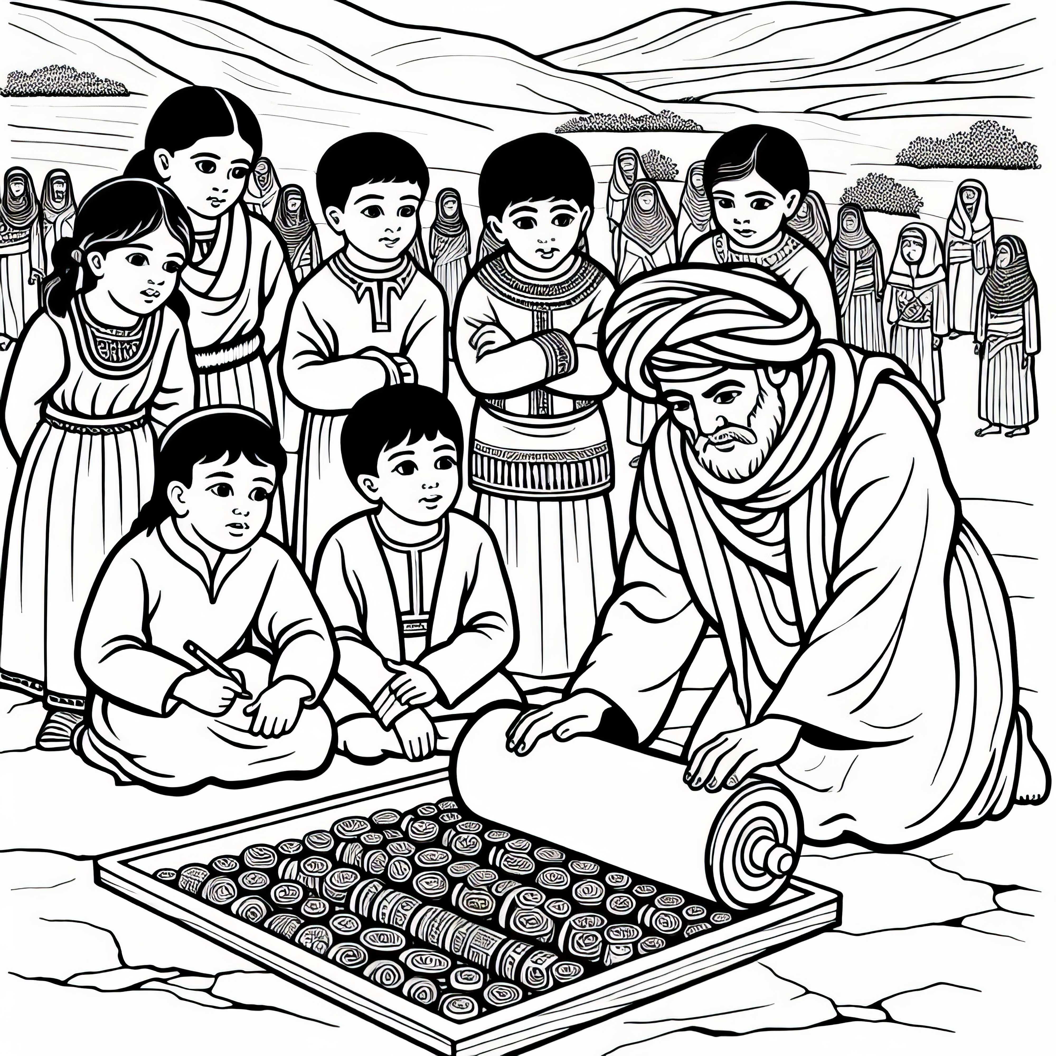 Børn mærker lerplader med symboler – Malebillede ældste civilisationer gratis