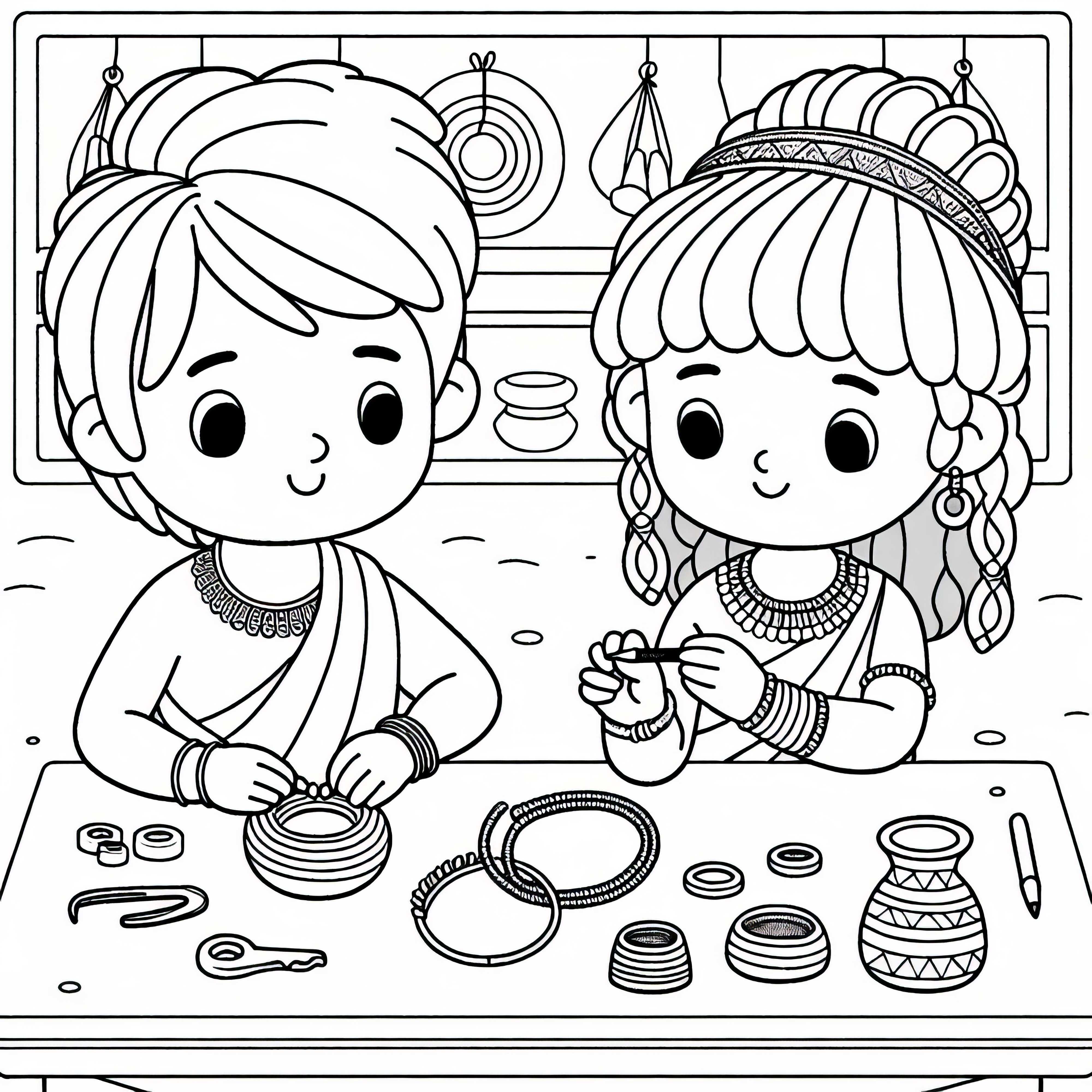 Børn mærker lerplader med symboler – Malebillede ældste civilisationer gratis