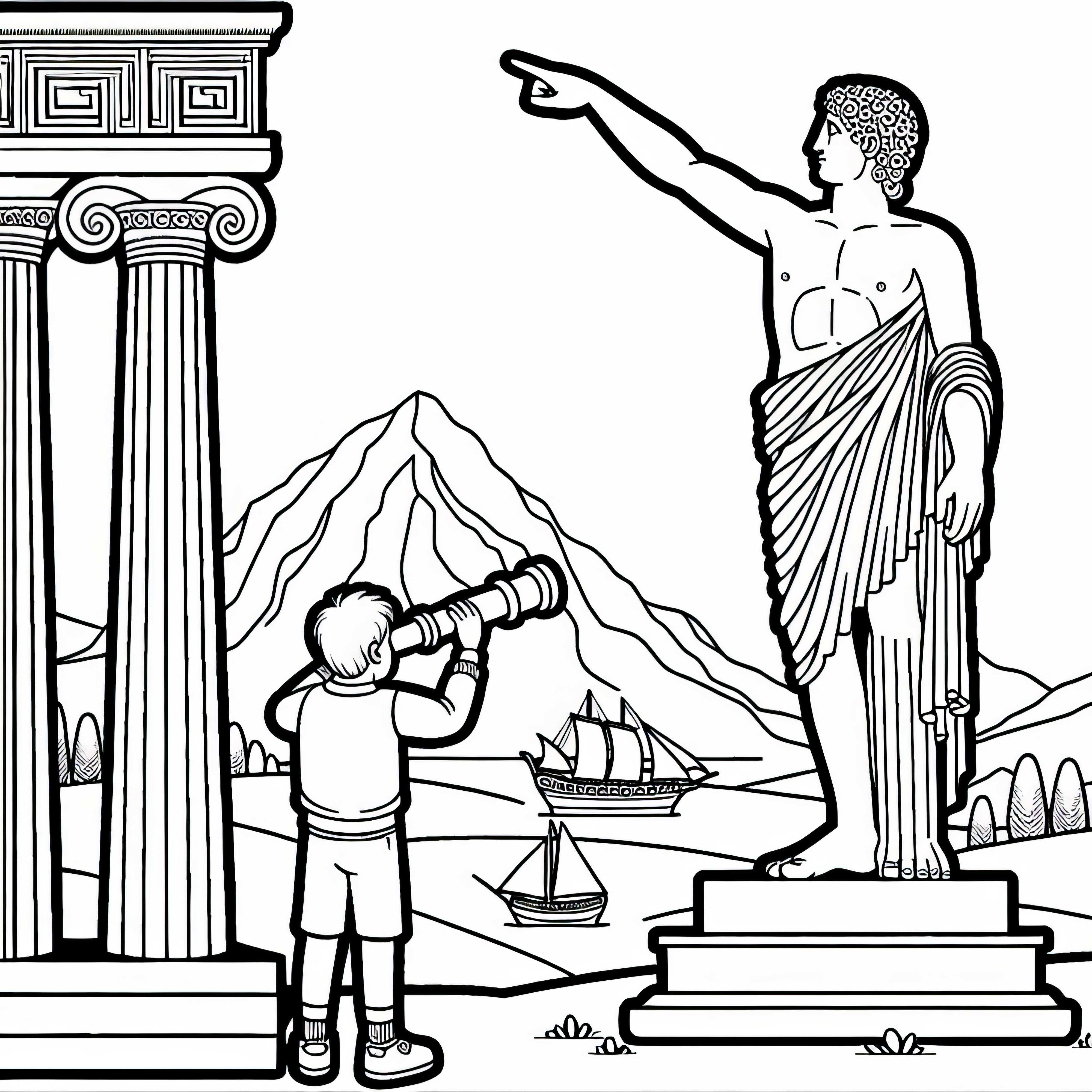 Mausoleum i Halikarnassos: Pige betragter statue – Malebillede verdensunder gratis
