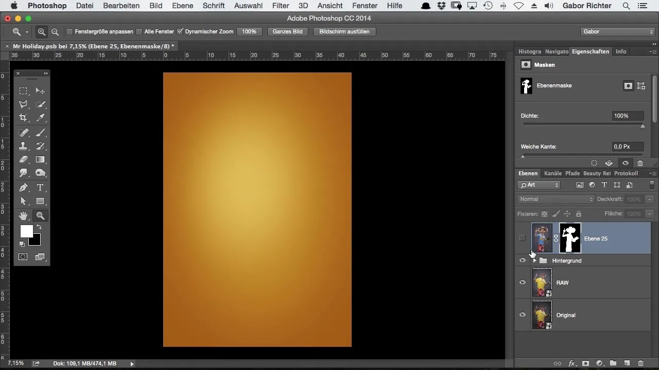 Når dit billede er frikliplet, skal du gå til lag for figuren. Aktiver friklipningsmasken for at kunne foretage præcise tilpasninger.