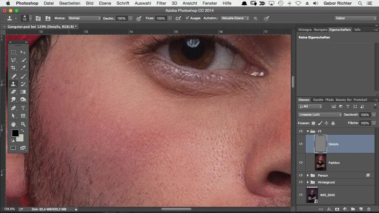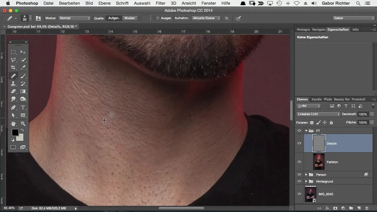 Kopistemplen er det perfekte værktøj til denne type retouchering. Med det kan du målrette de områder, du vil redigere. Sørg for at aktivere det aktuelle lag, mens du redigerer detaljeniveauet, for at opnå optimale resultater.