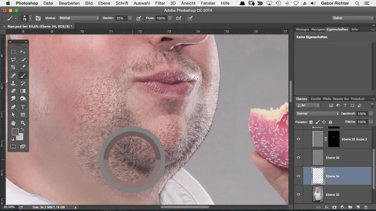 Når du har eksperimenteret med opaciteten, vil skægget fremstå i et mere realistisk lys. Det er vigtigt, at hver justering sker gradvis, således at du bevarer kontrol over hele processen.