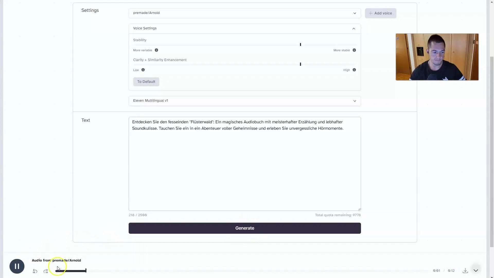 Klik på "Generer" for at oprette lyden. Efter kort tid modtager du resultatet, som du kan lytte direkte til og downloade. Prøv forskellige stemmer og tekster for at forstå de forskellige lyde og stilarter.