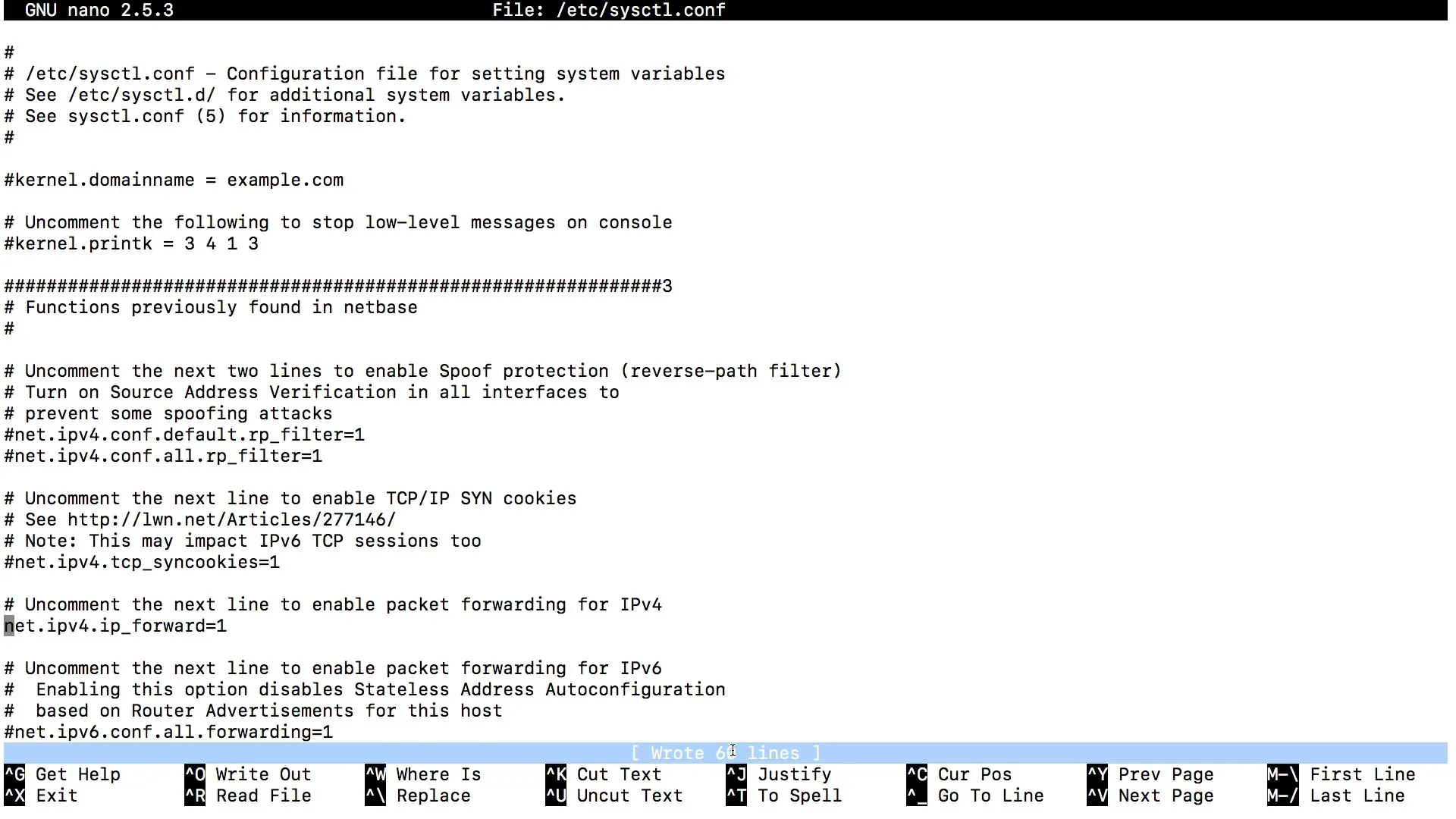 Hvordan aktiverer jeg IP-viderekobling?Brug kommandoen sudo nano /etc/sysctl.conf, fjern kommentar-tegnet foran linjen net.ipv4.ip_forward = 1 og gem filen.