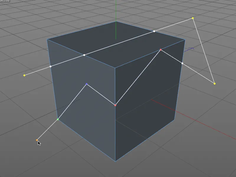 De orange anførere på Lagsektions-manipulatoren må ikke glemmes. Anførerne i slutningen af akserne muliggør fri bevægelse af lagsektionsaksen i redigeringsvisningen. Anføreren i manipulatorens oprindelse, der gør det muligt at flytte lagsektionen frit med konstant retning, er lidt sværere at skelne. For alle anførere gælder det: Automatisk tilpasning til punkter, kanter og polygoner fungerer selvfølgelig.