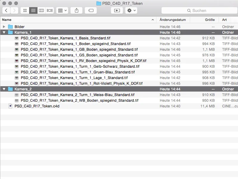 Med flere tokens bliver det mere og mere tydeligt, hvilken variant det drejer sig om. Det ville dog være endnu mere praktisk, hvis optagelserne under renderingen automatisk blev sorteret i passende mapper. Dette er heller ikke noget problem, så snart man har besluttet sig for det token eller de tokens, som opdelingen skal baseres på.