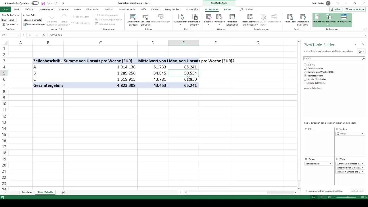 Du har nu allerede beregnet fem vigtige nøgletal i din pivottabel. I fremtidige lektioner vil du lære, hvordan du kan tilføje individuelle nøgletal ved hjælp af indstillingen "beregnet felt". Dette gør det muligt for dig at beregne yderligere KPI'er baseret på allerede eksisterende felter.