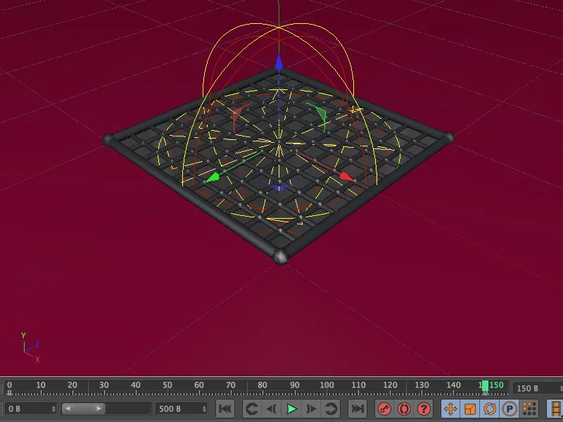 Der er ikke mere at gøre ved denne lille parameteranimation. Vingebladene på vindobjektet står stille indtil billede 149 og begynder først at bevæge sig fra billede 150.