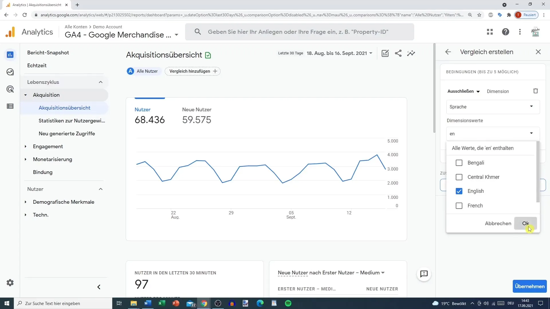 Kan jeg udelukke brugere baseret på sprog?Ja, du kan udelukke og analysere brugere baseret på deres sprog.