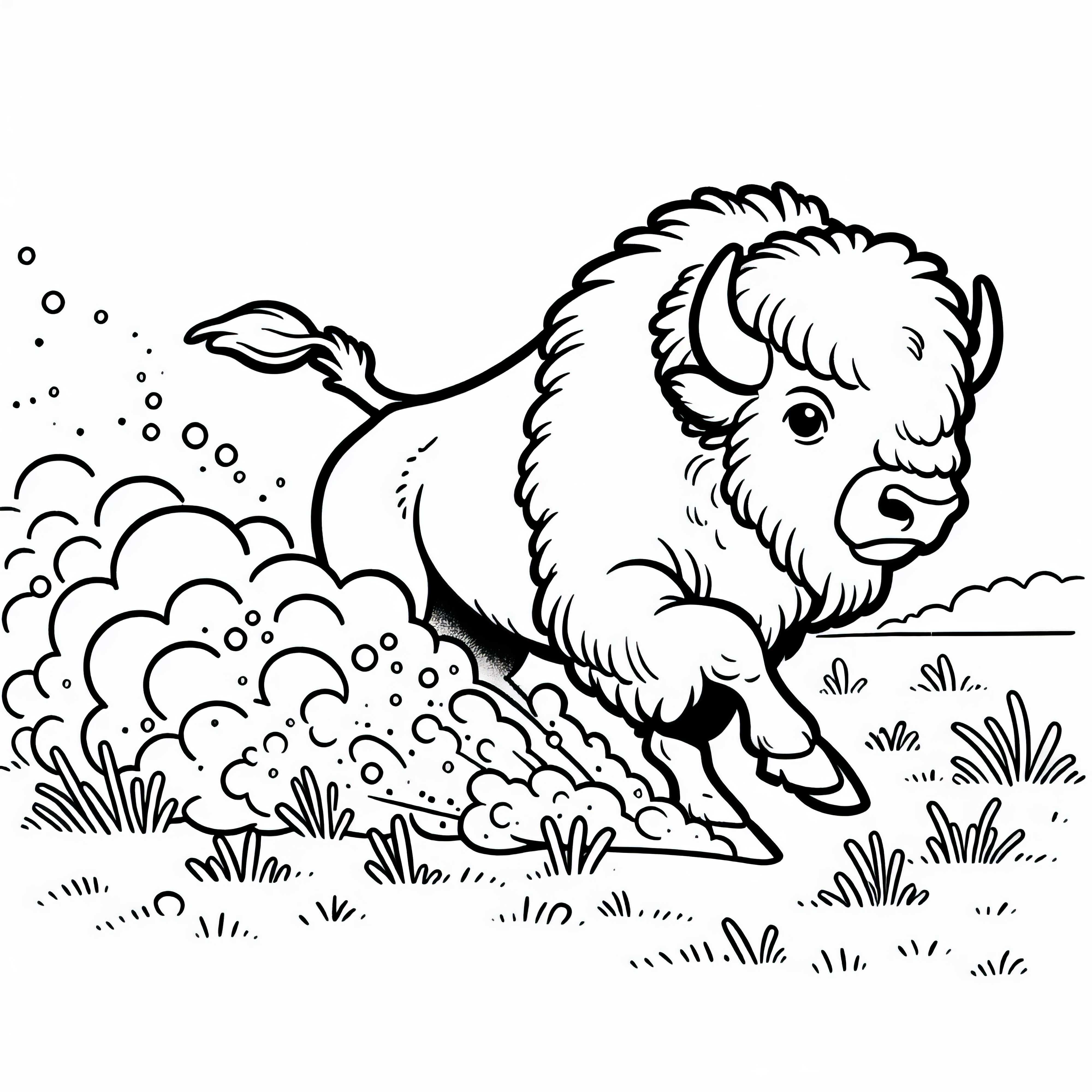 Bison wirbelt Staub auf während es über Prärie rennt – Malvorlage gratis