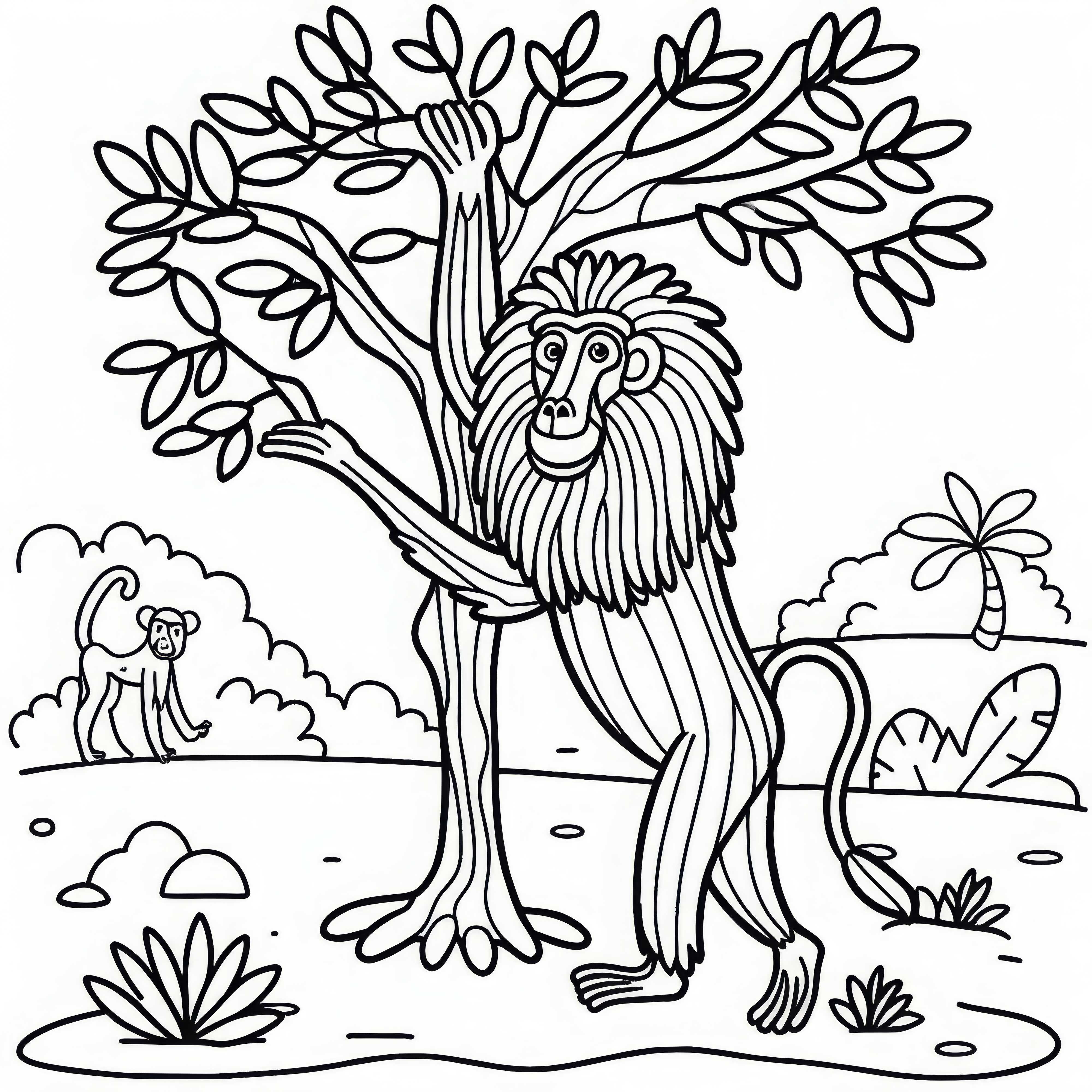 Ein Pavian sitzt auf einem Baum – Ausmalbild gratis