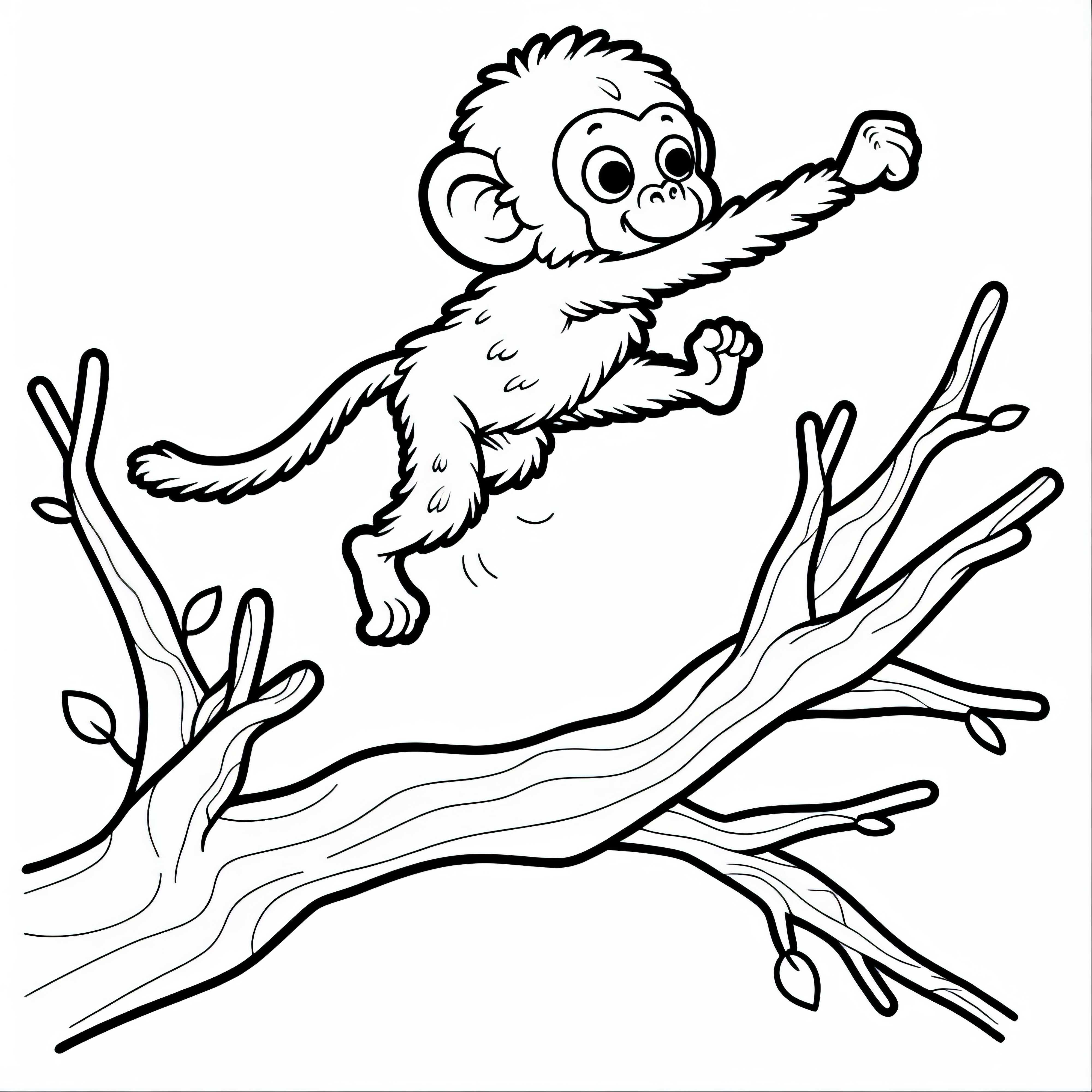 Pavian springt von Ast zu Ast – Malvorlage kostenlos