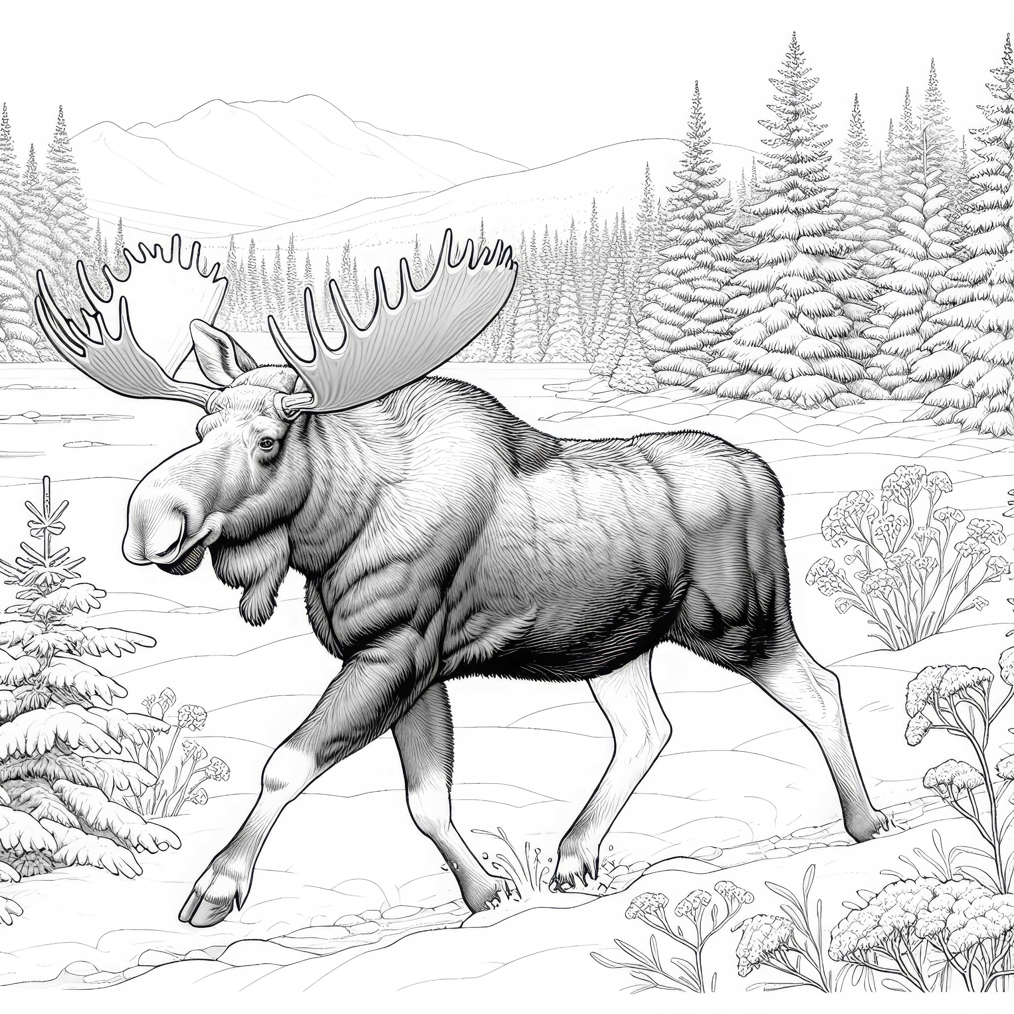 Elch durchstreift herbstliche Waldlandschaft – Detailreiche Malvorlage kostenlos