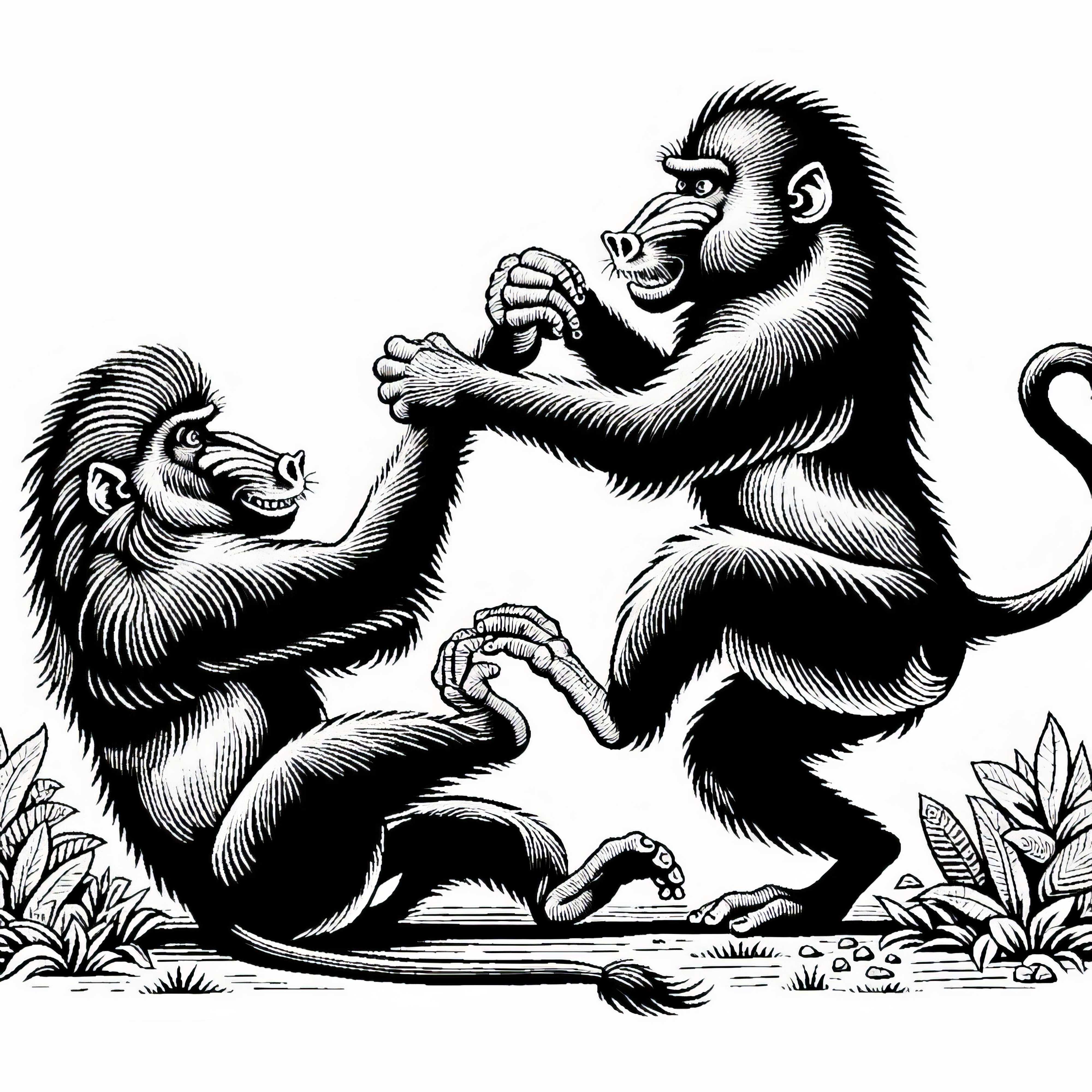 Mandrill kratzt sich mit Pfote am Kopf – Ausmalbild kostenlos herunterladen