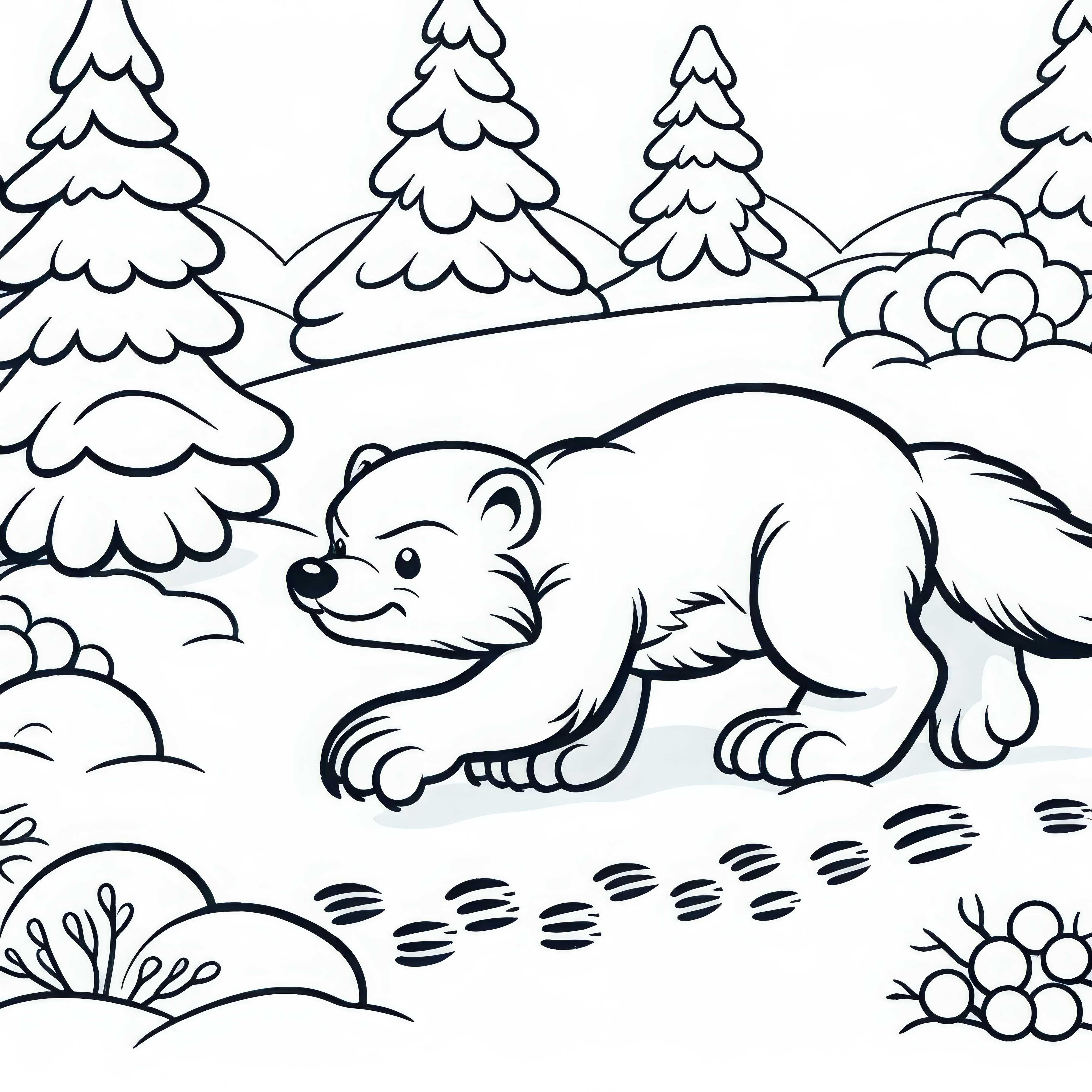 Vielfrass vergräbt ein Stück Fleisch – Ausmalbild kostenlos herunterladen