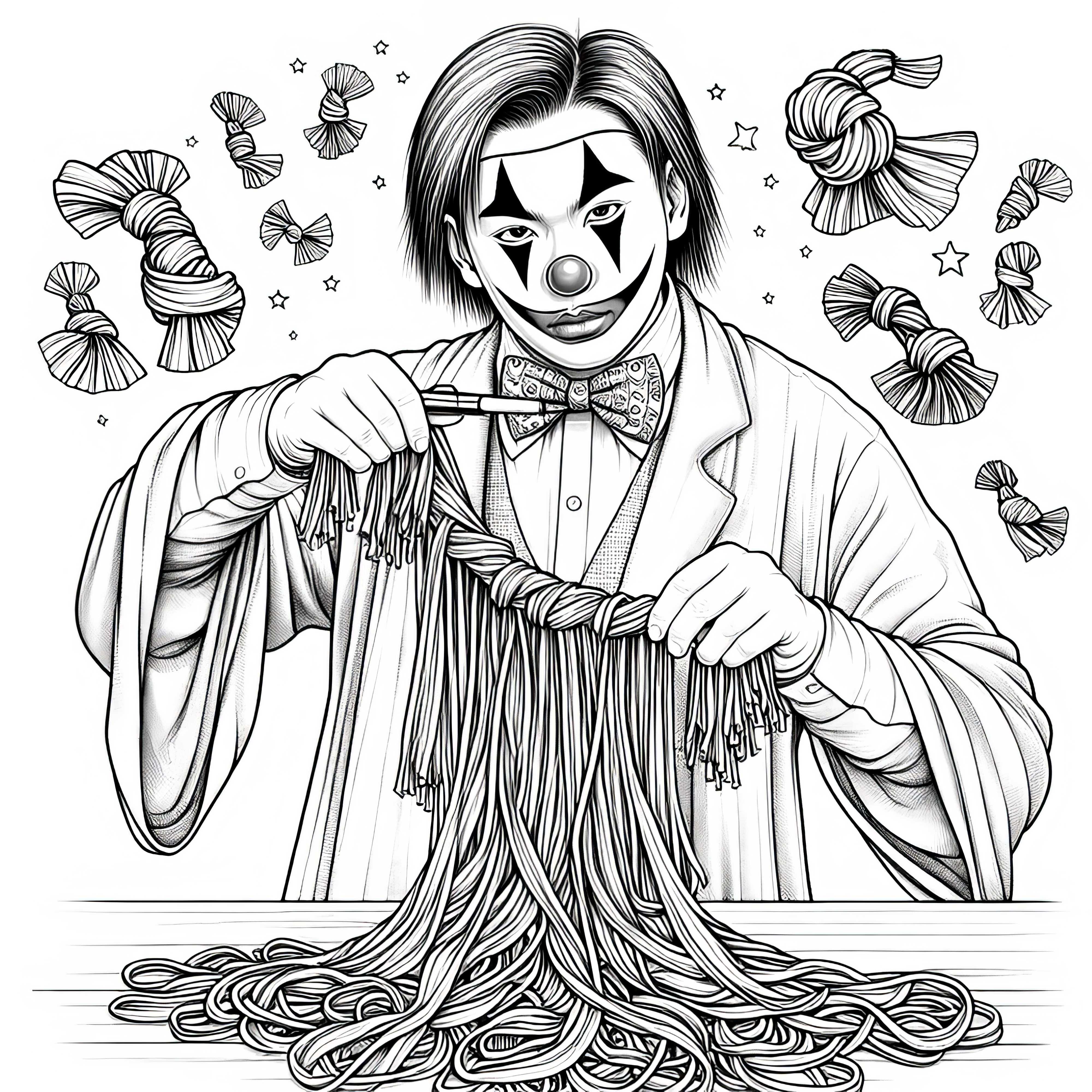 Clown formt Ballontiere für Kinder – Malvorlage detailreich kostenlos