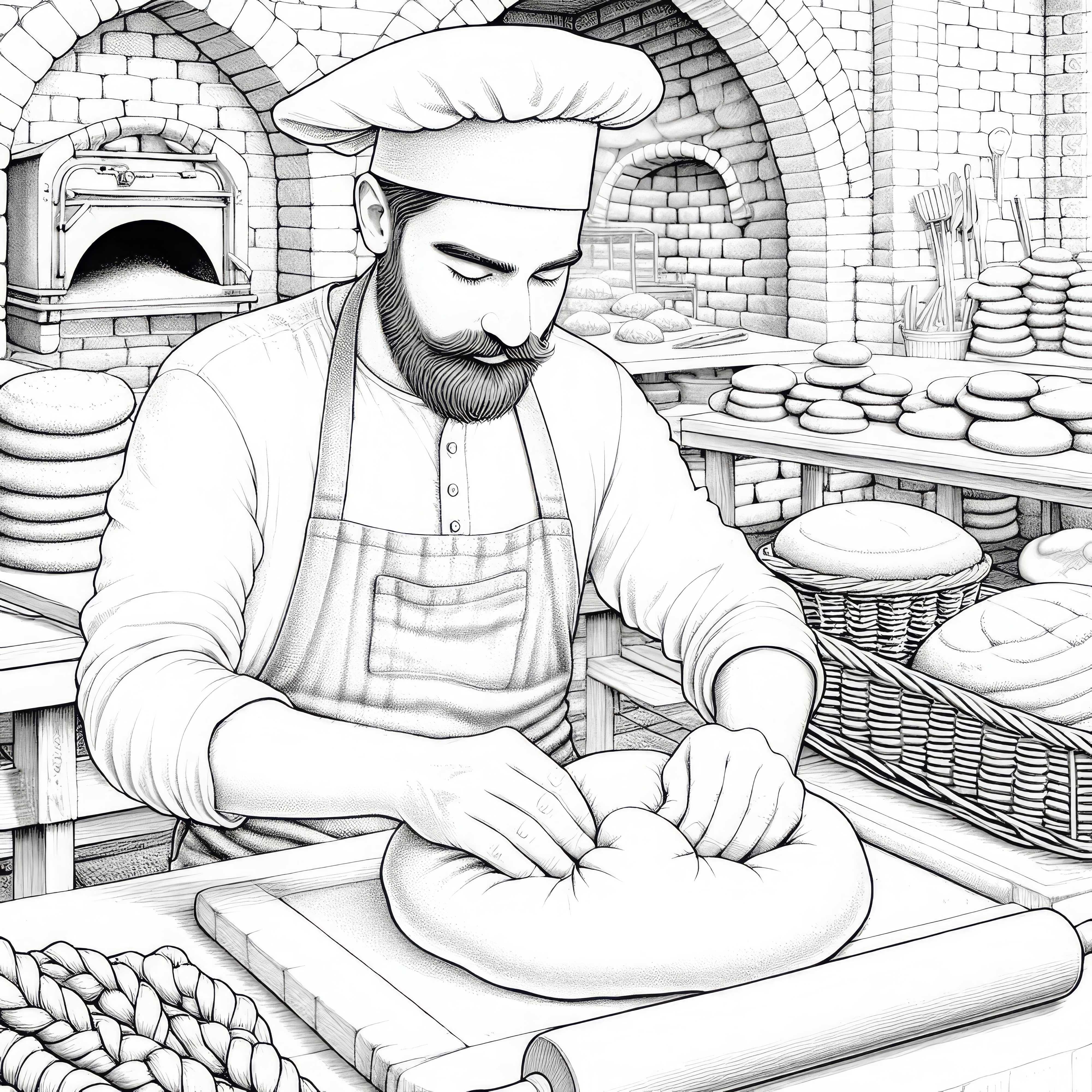 Bäcker, der Teig knetet – Detailreiches Ausmalbild kostenlos