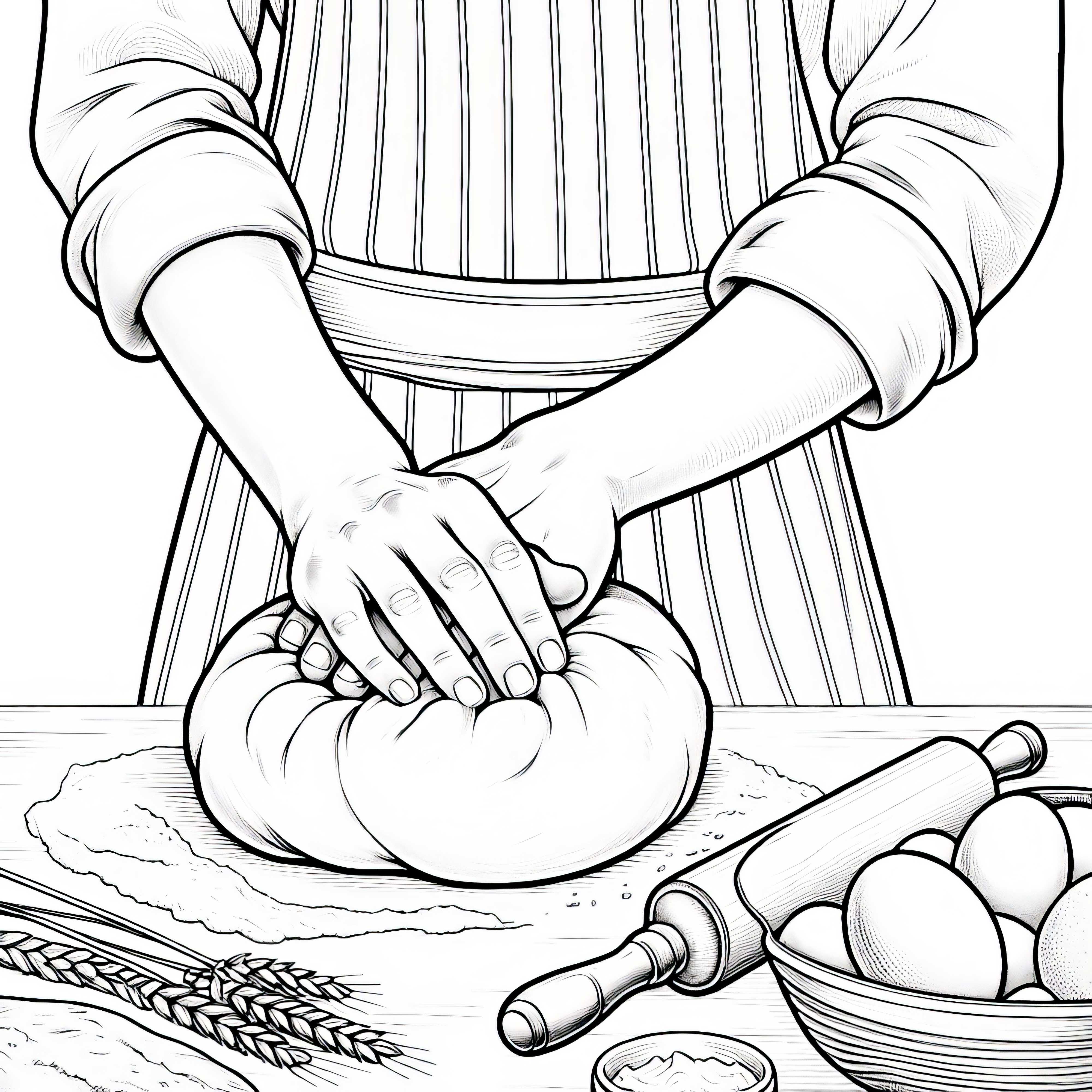 Bäckerin macht Croissants - Ausmalbild einfach kostenlos