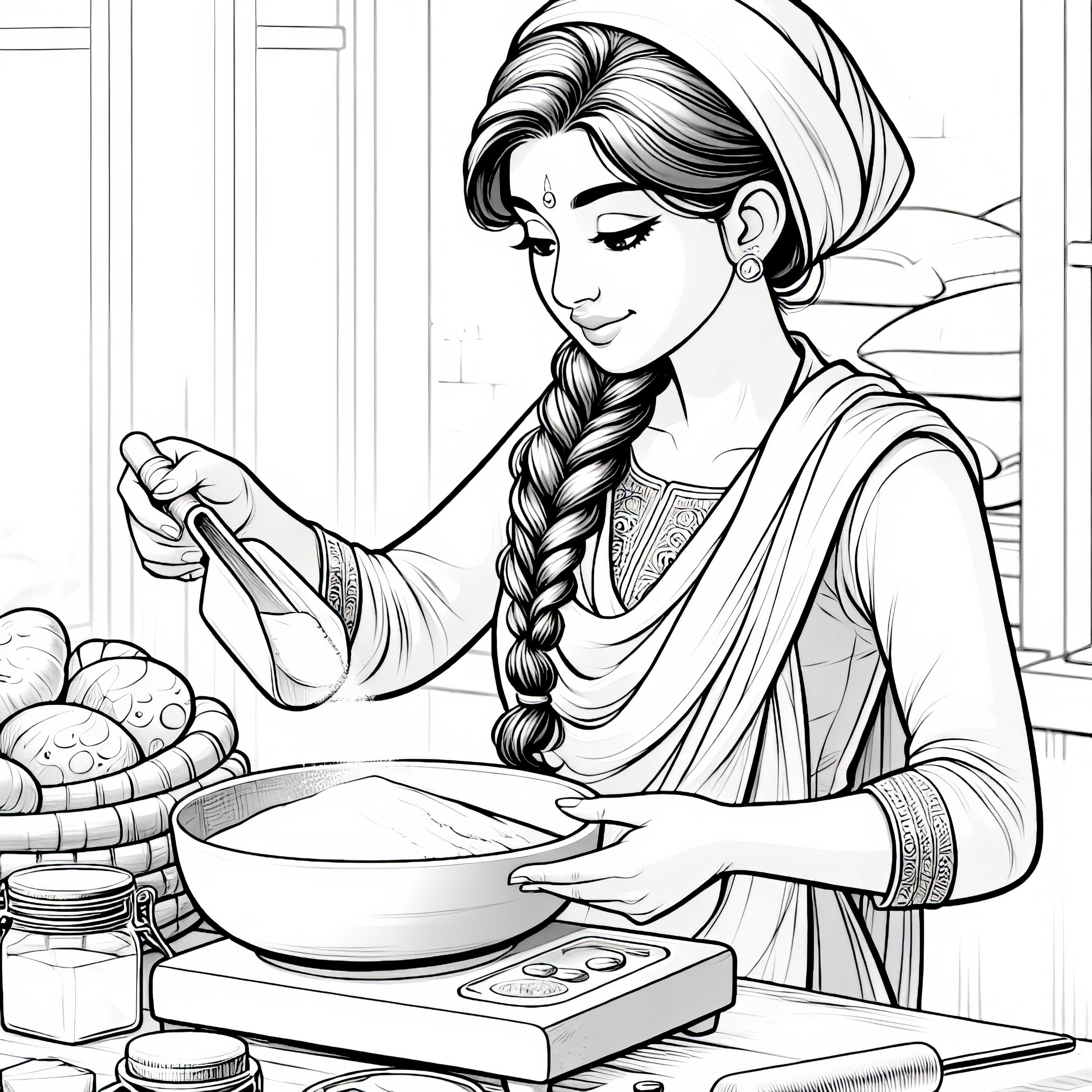 Bäckerin, die Kekse aussticht und verziert – Ausmalbild in hoher Qualität