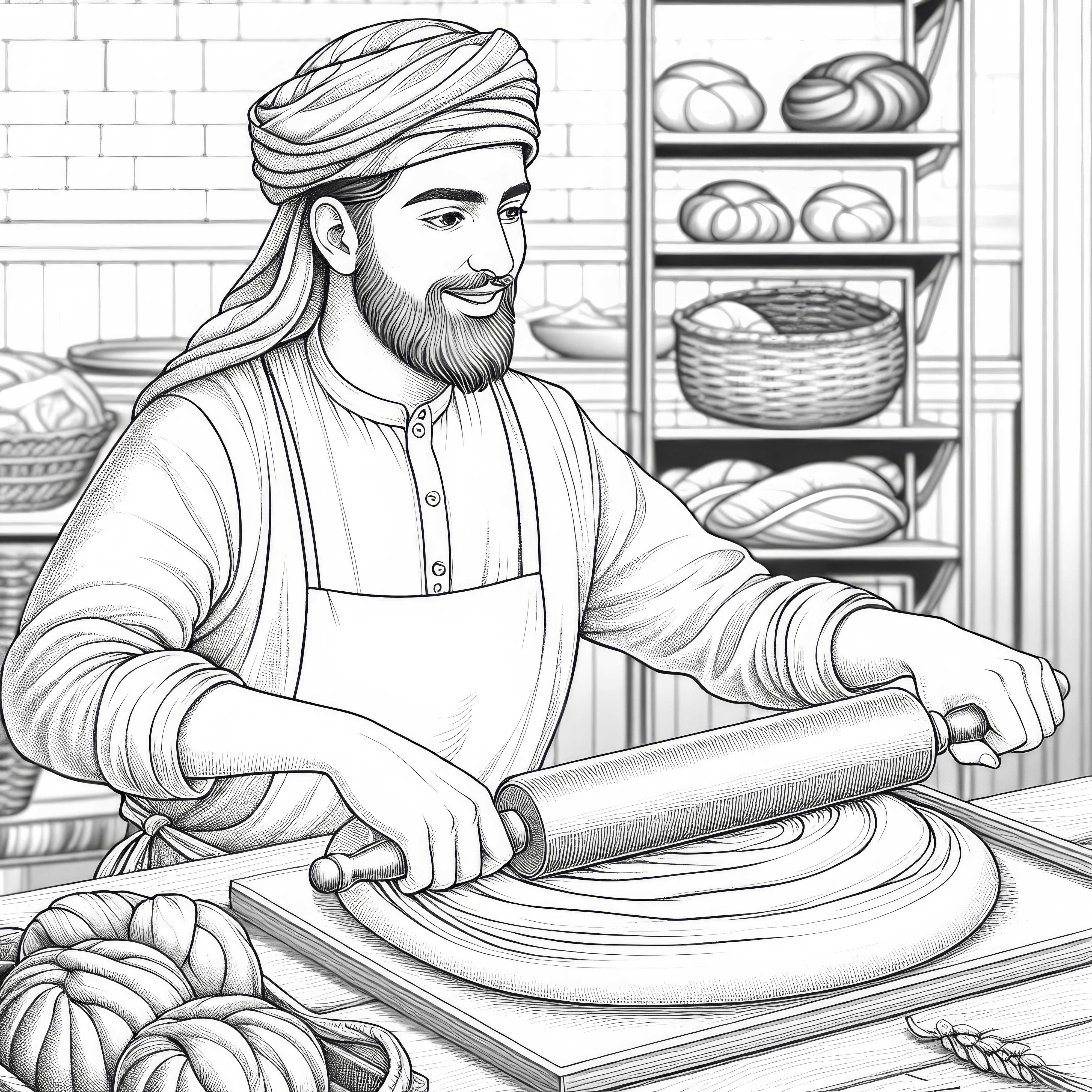 Bäcker, der Teig knetet – Detailreiches Ausmalbild kostenlos