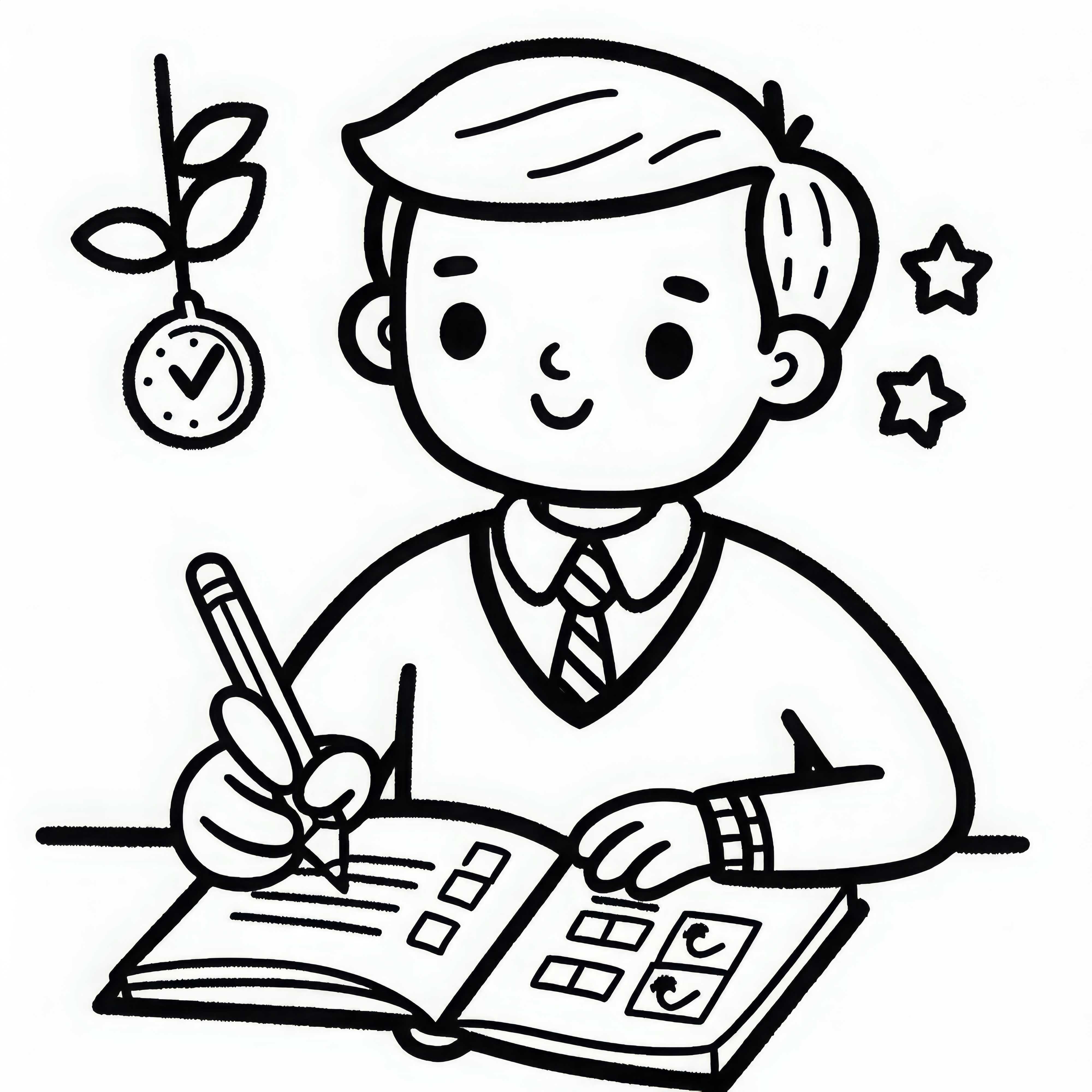Lehrer, der Noten in ein Heft einträgt – Malvorlage kostenlos