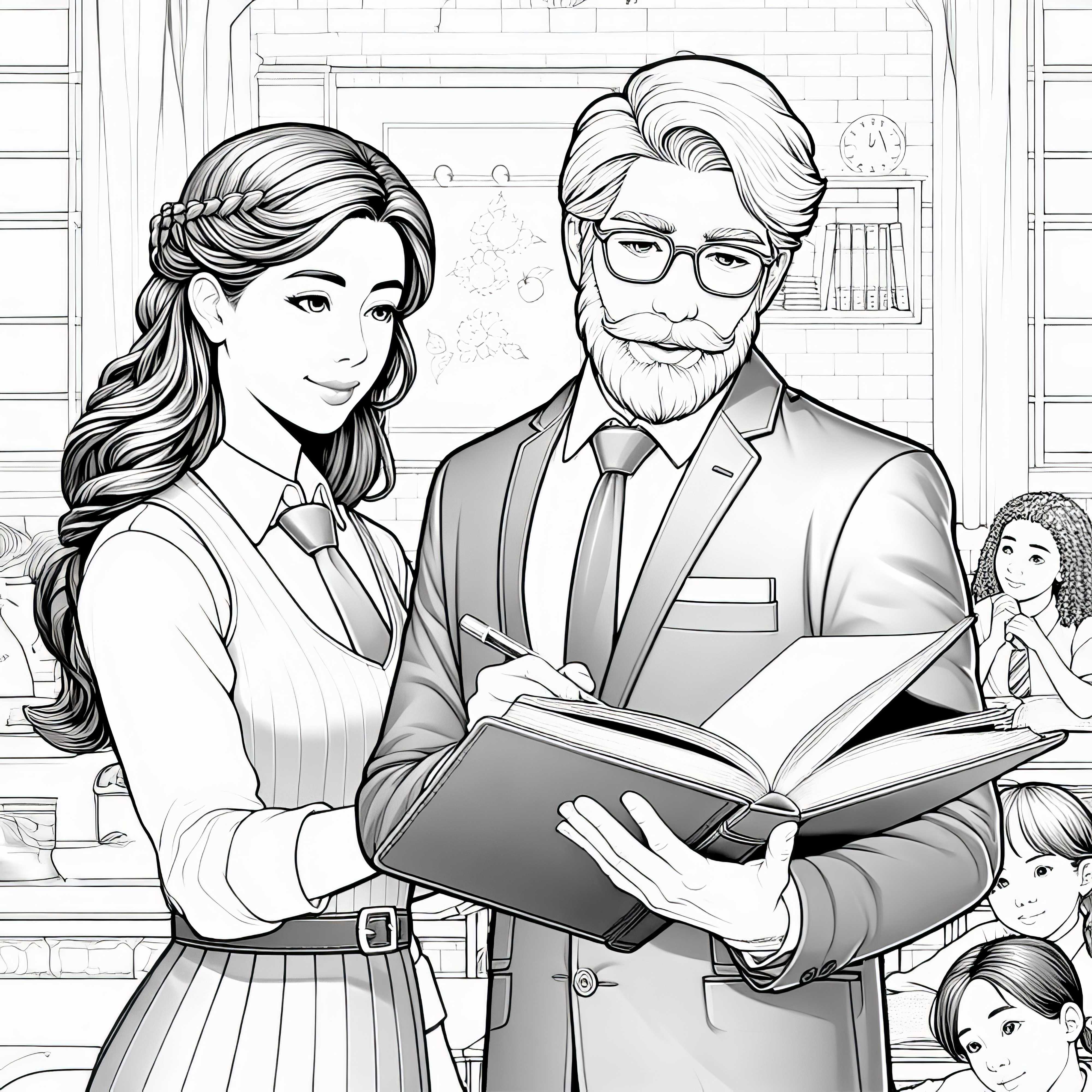 Zwei Lehrer Ausmalbild Detailreich Kostenlos