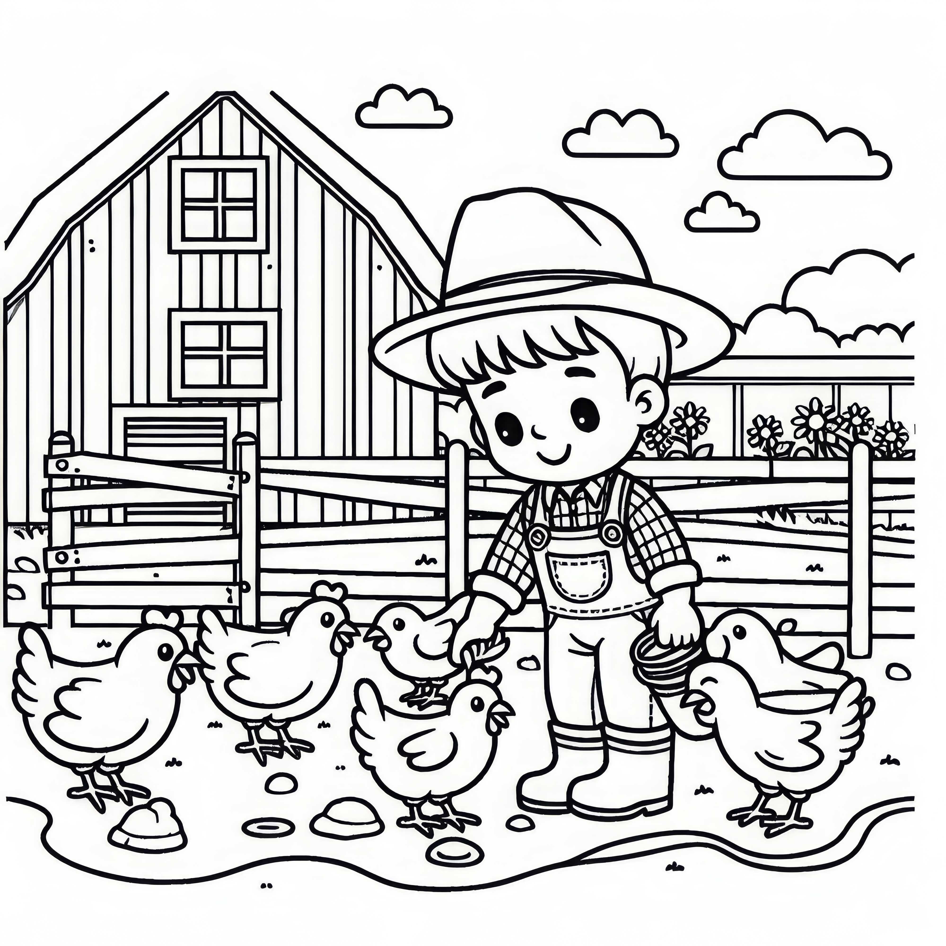 Landwirtin sammelt Eier von Hühnern – Malvorlage kostenlos