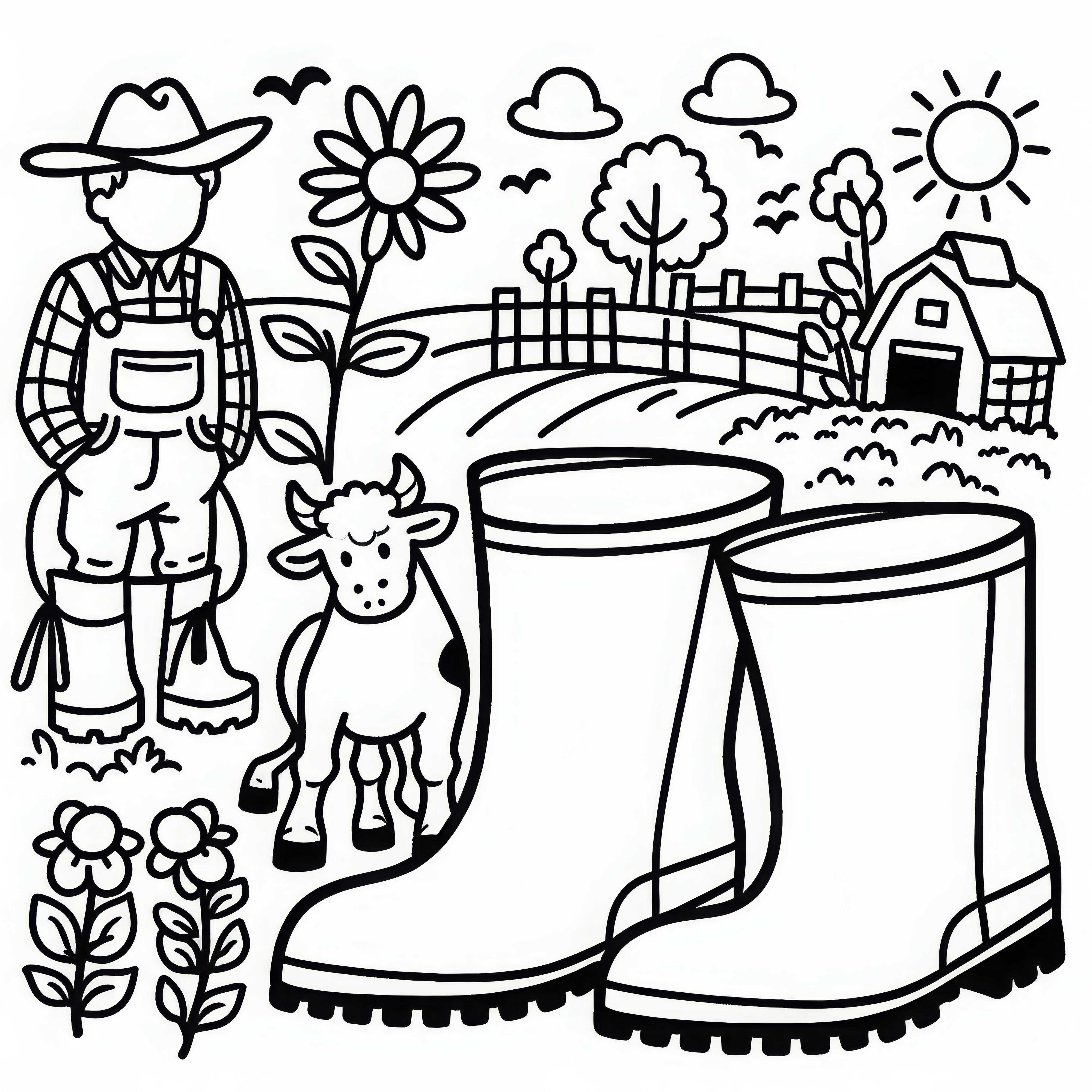 Gummistiefel für Bauern – Detailreiches Ausmalbild Kostenlos