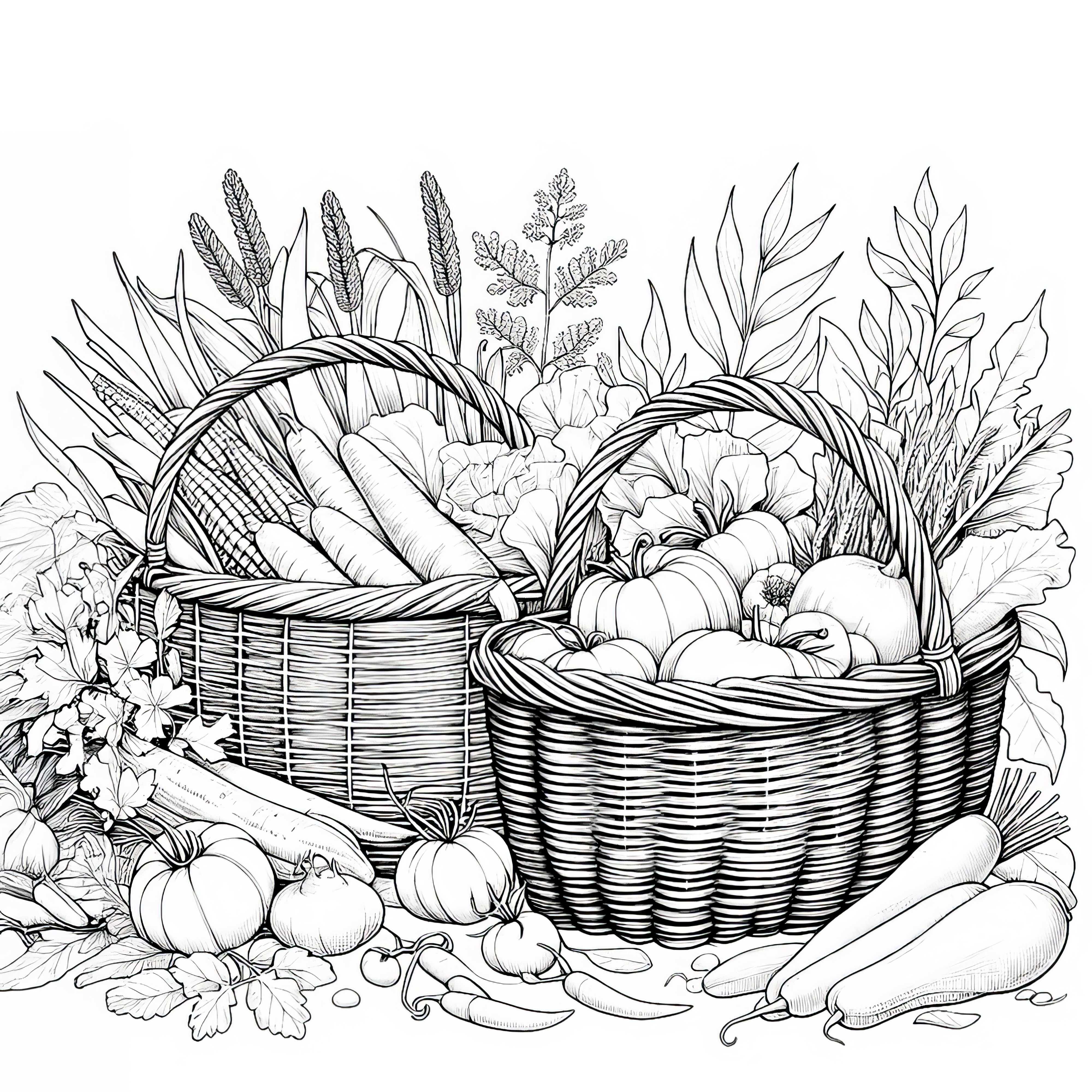 Körbe mit Gemüse vom Bauern – Ausmalbild einfach und kostenlos