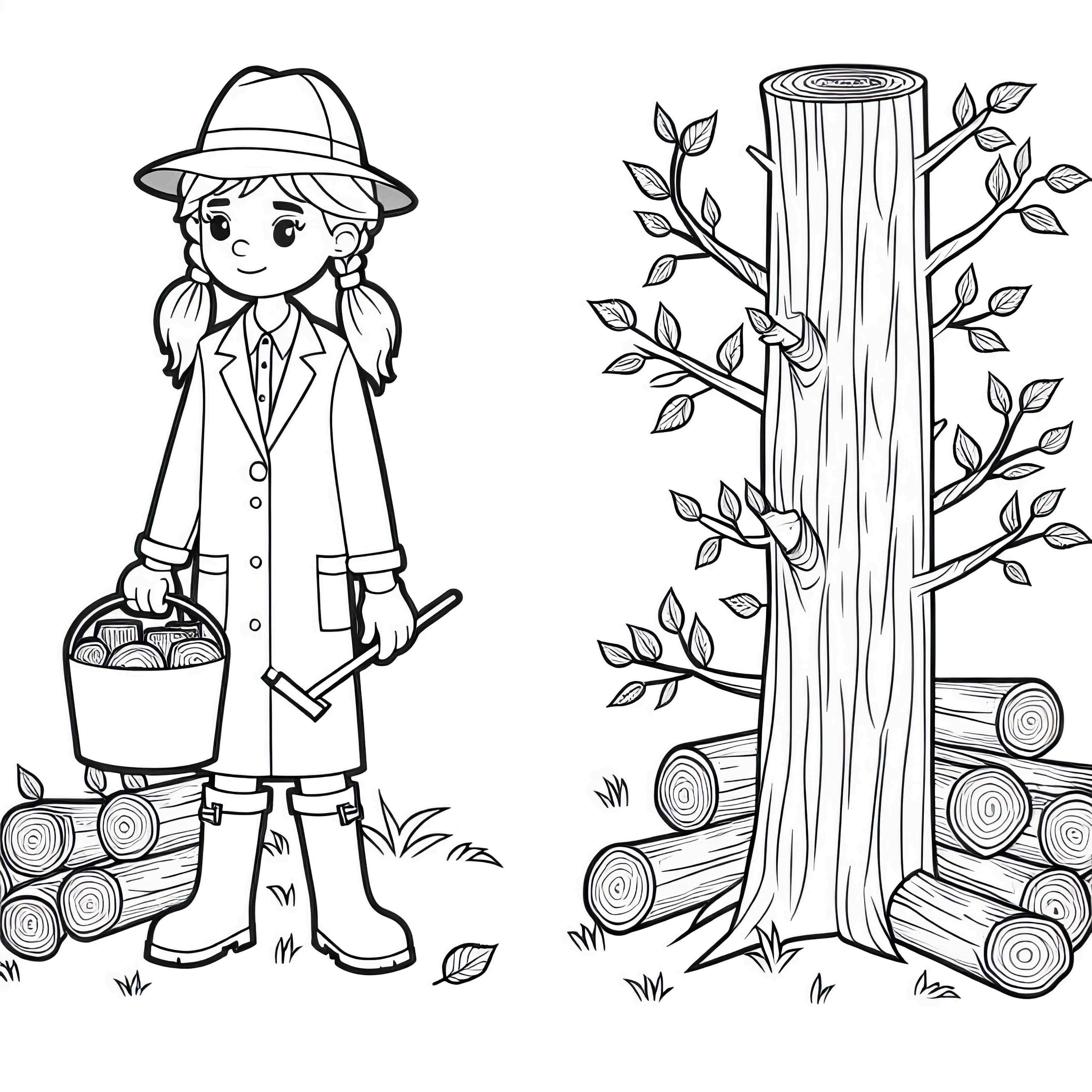 Förster inspiziert Zustand von Bäumen – Ausmalbild kostenlos