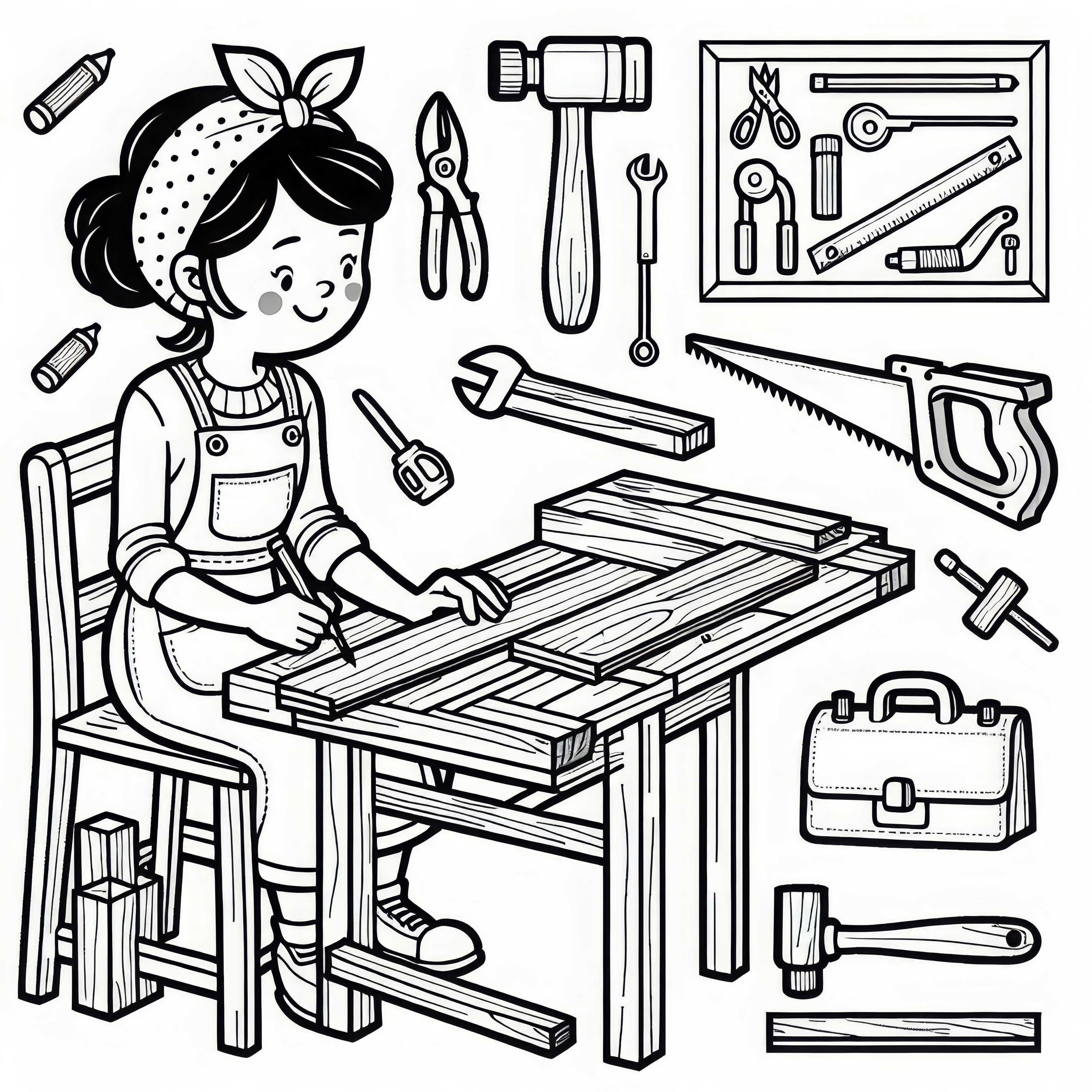 Schreinerin erstellt Holzskulptur als Ausmalbild gratis