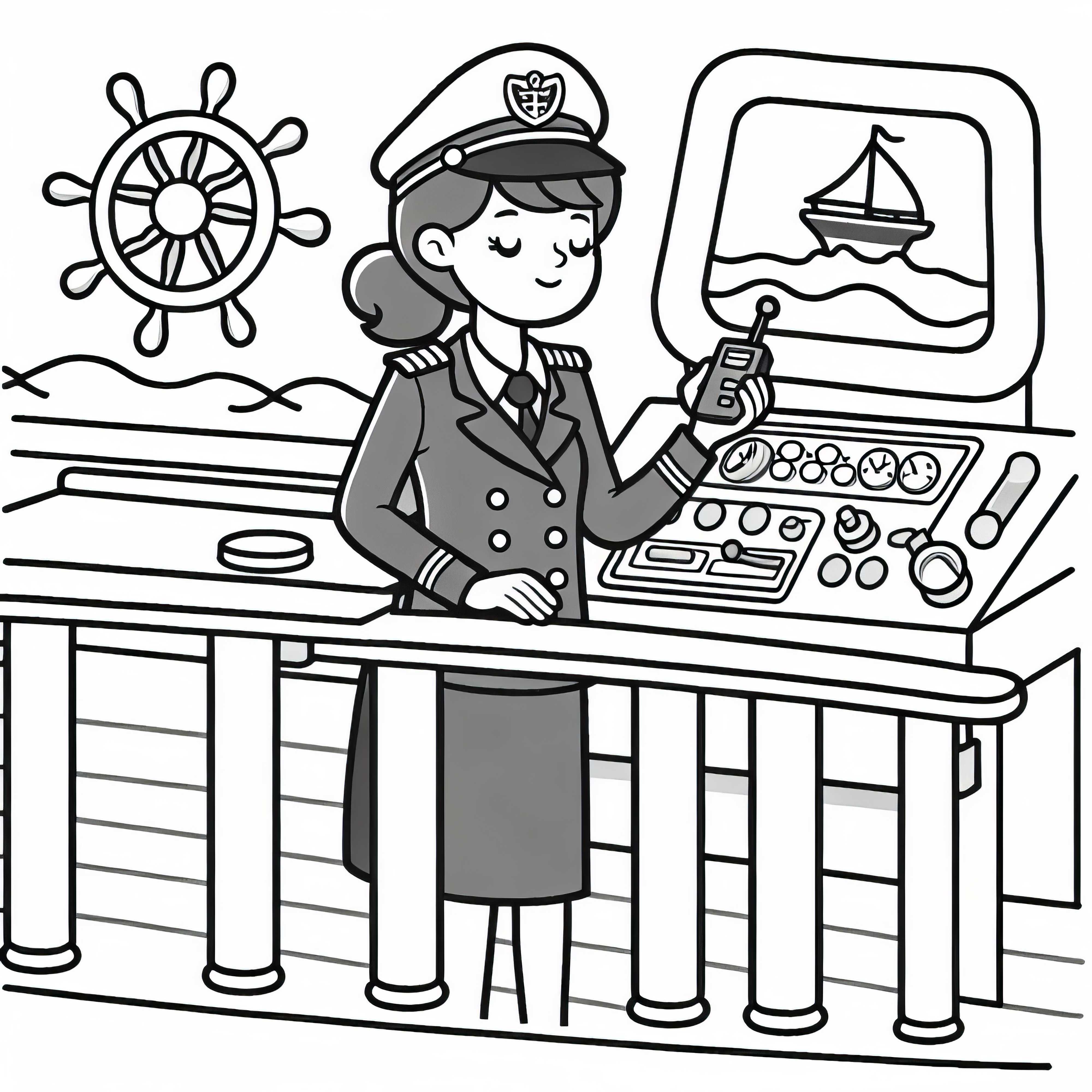 Schiffskapitänin Überprüft Instrumente – Ausmalbild Kostenlos