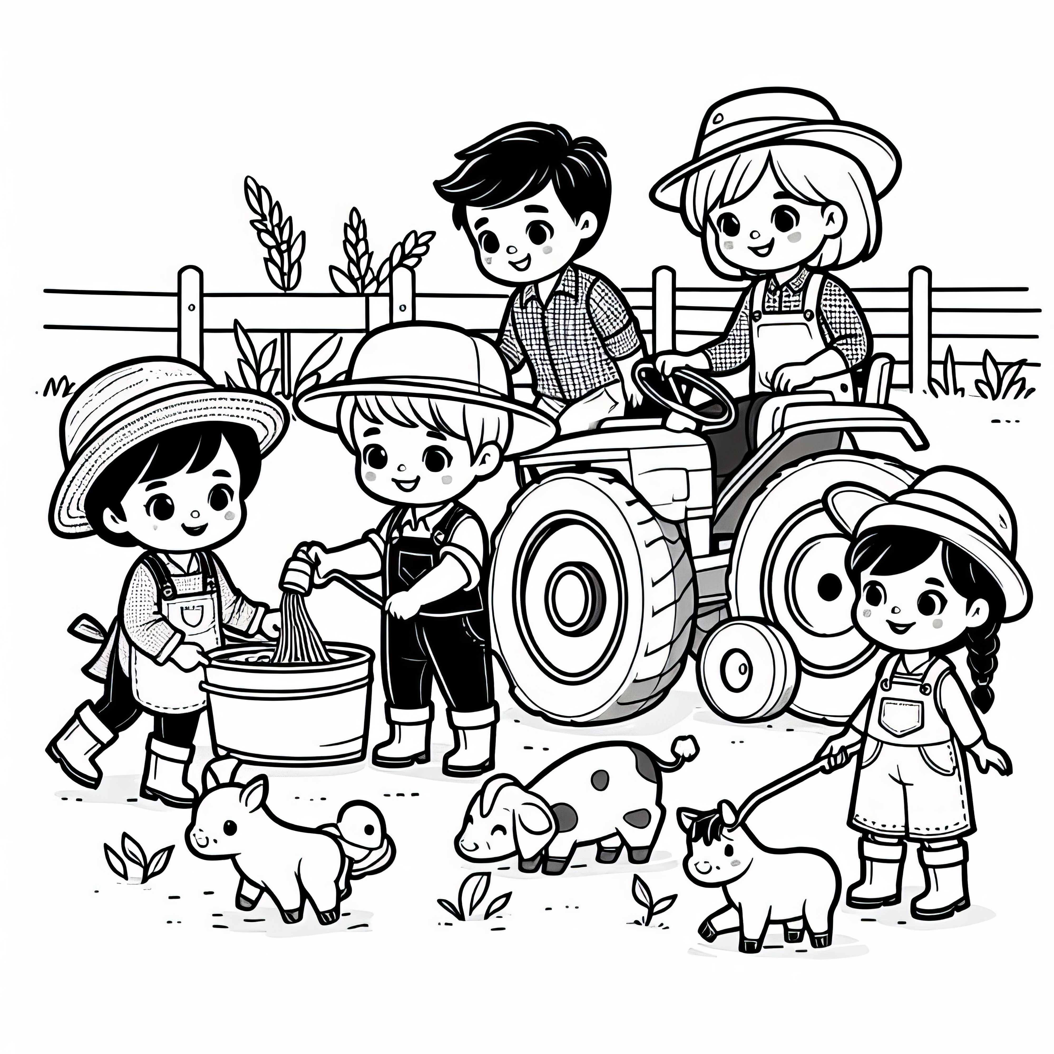 Kinder, die sich als Bauer verkleiden – Ausmalbild zum Download