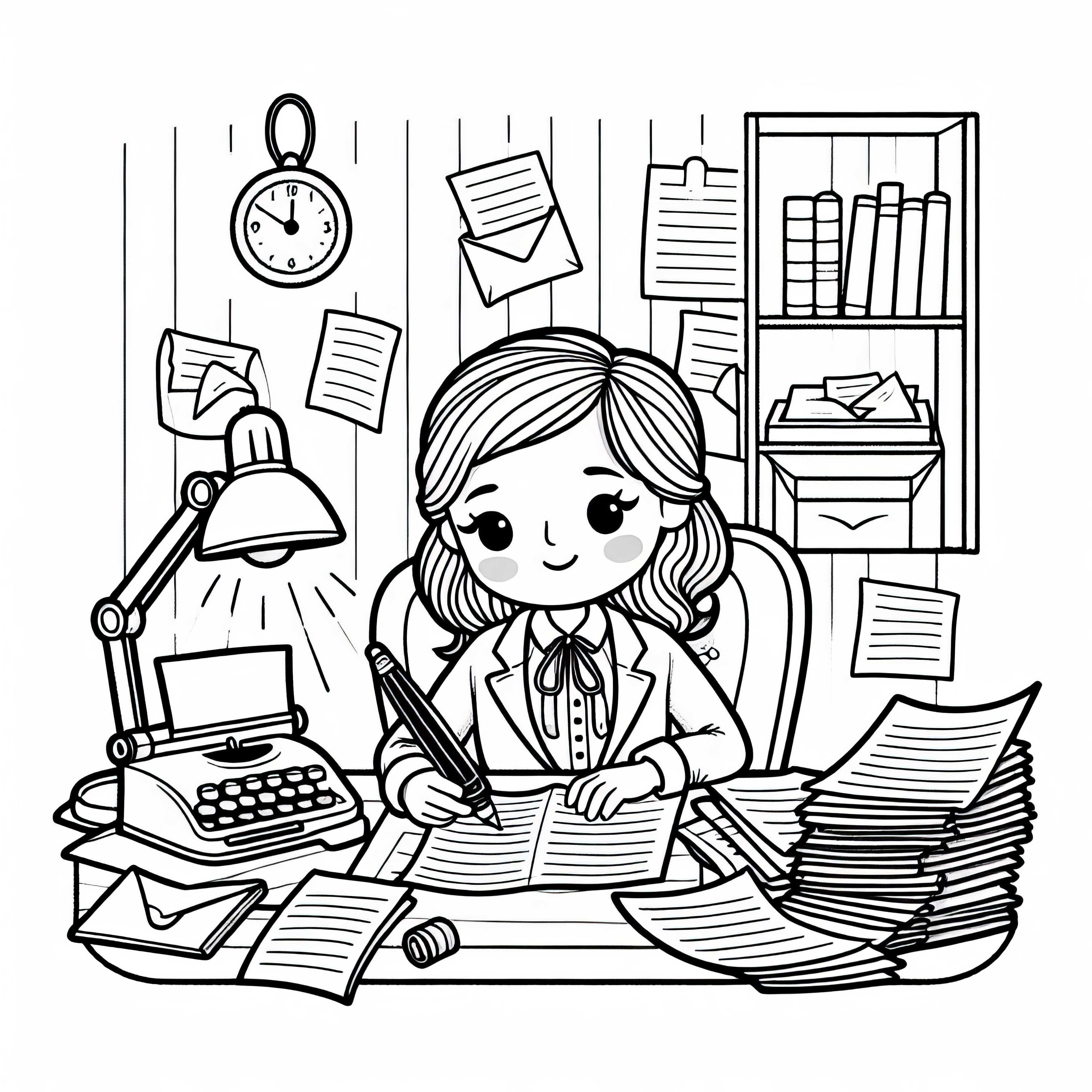 Schriftstellerin beim Überarbeiten eines Manuskripts – Malvorlage gratis