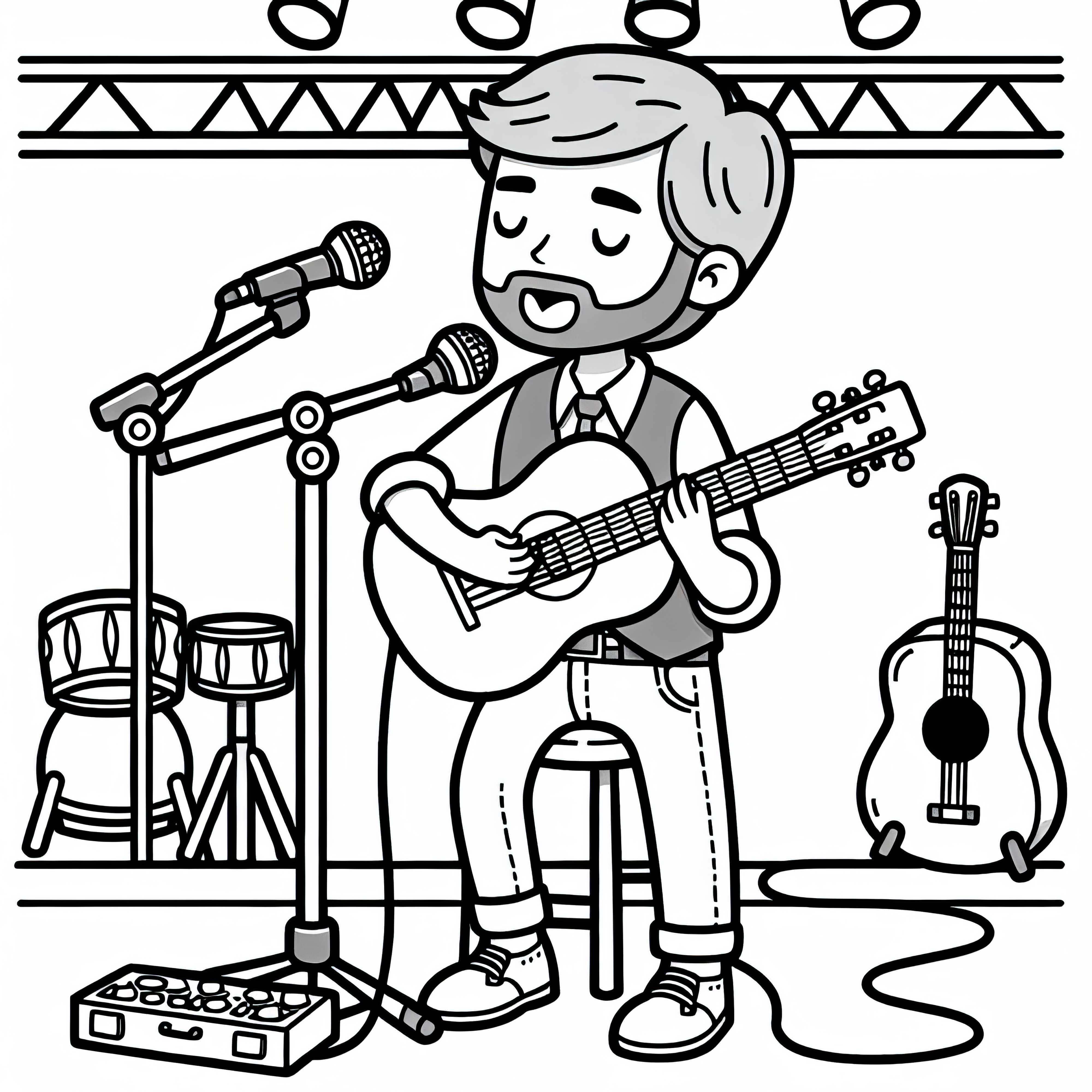 Musiker probt mit Band im Studio – Ausmalbild einfach kostenlos