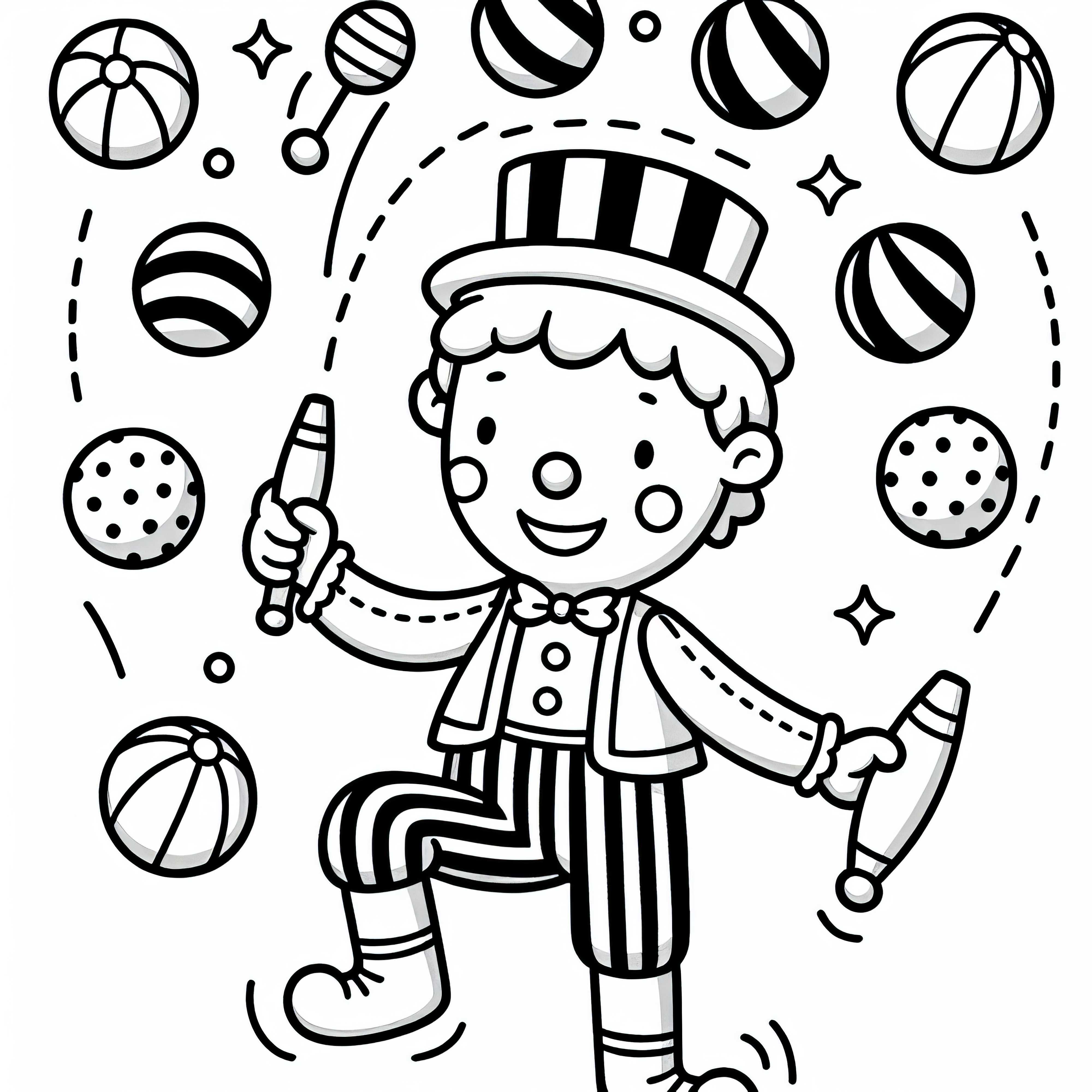 Jonglierbälle eines Zirkusartisten – Ausmalbild kostenlos herunterladen