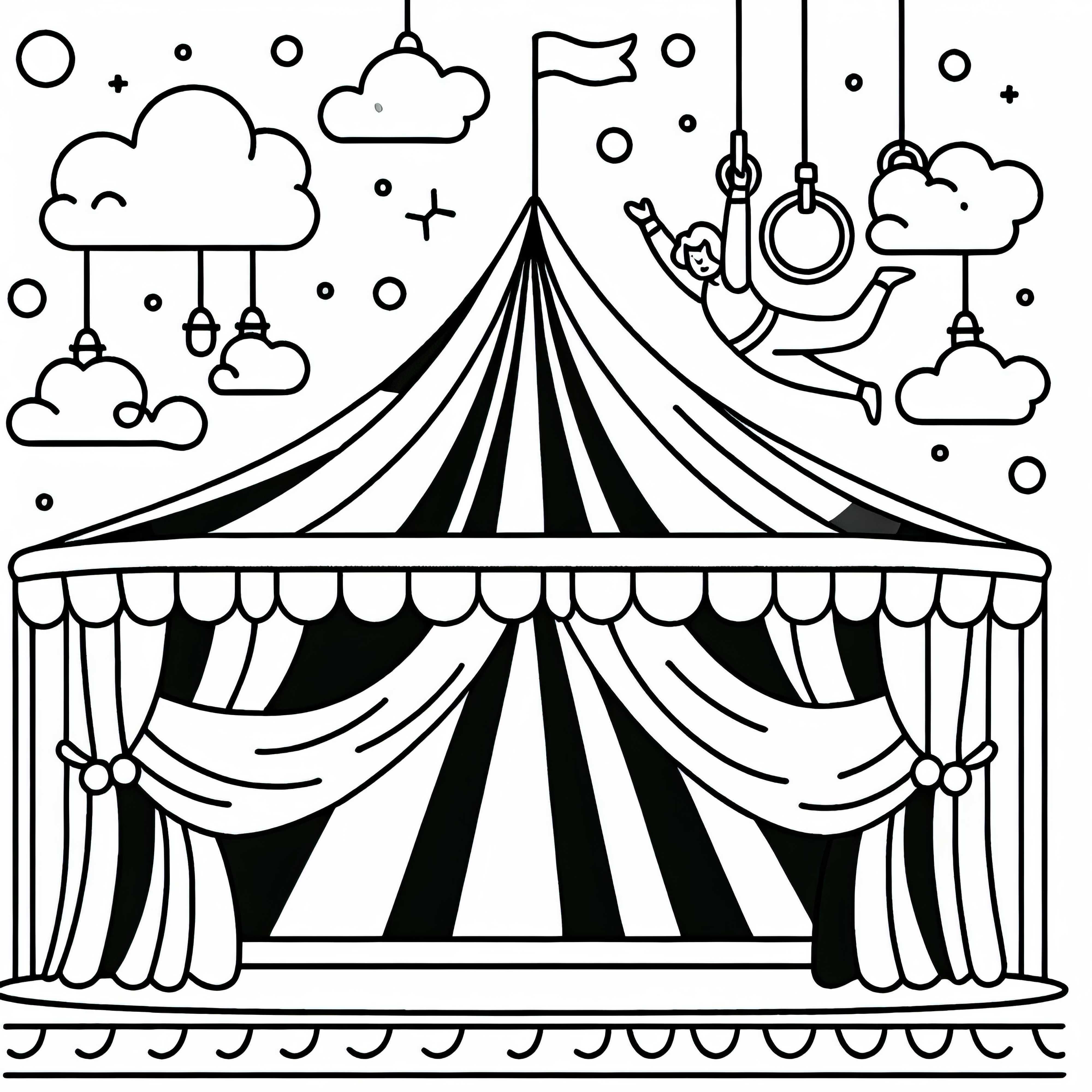 Zirkusartist am Eingang zum Zirkuszelt - Malvorlage einfach und gratis