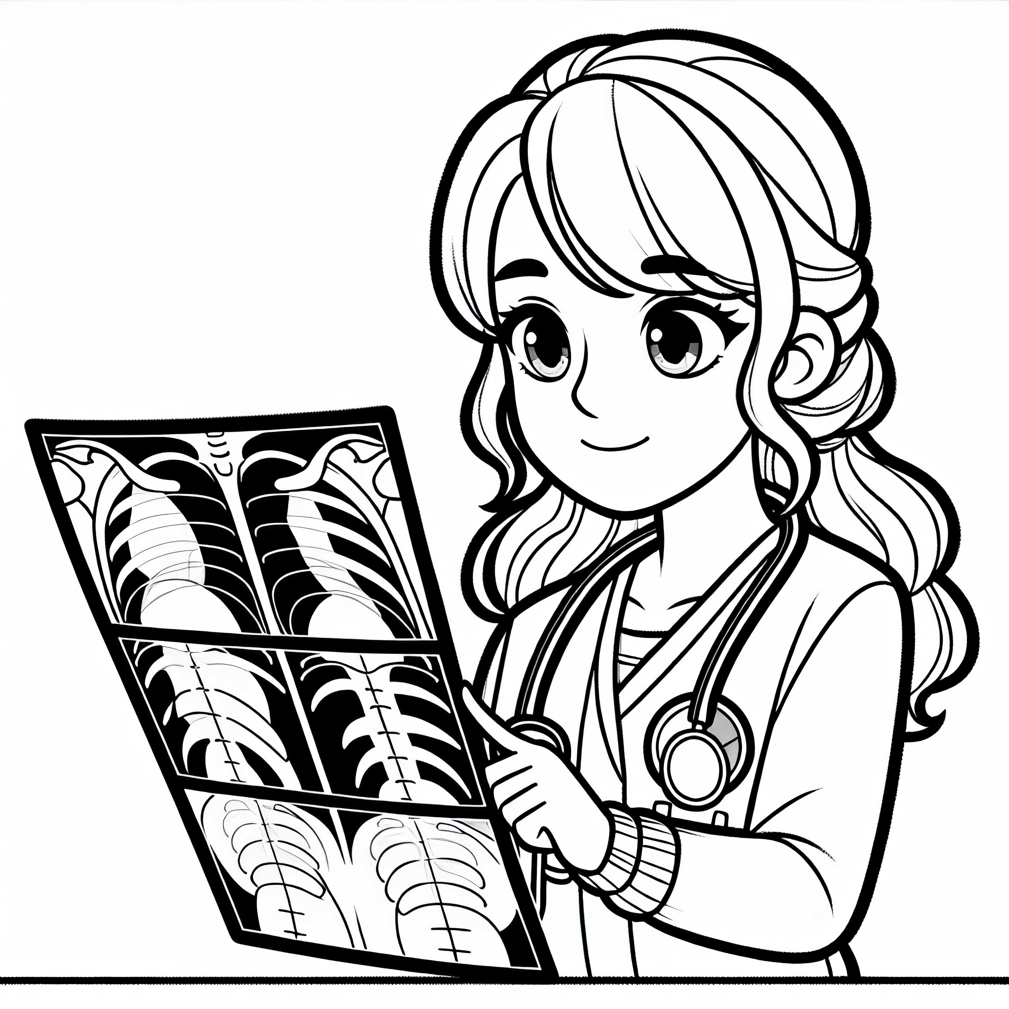 Ausmalbild einer Chirurgin bei der Überprüfung von Röntgenbildern. Lade dir das Bild jetzt herunter!