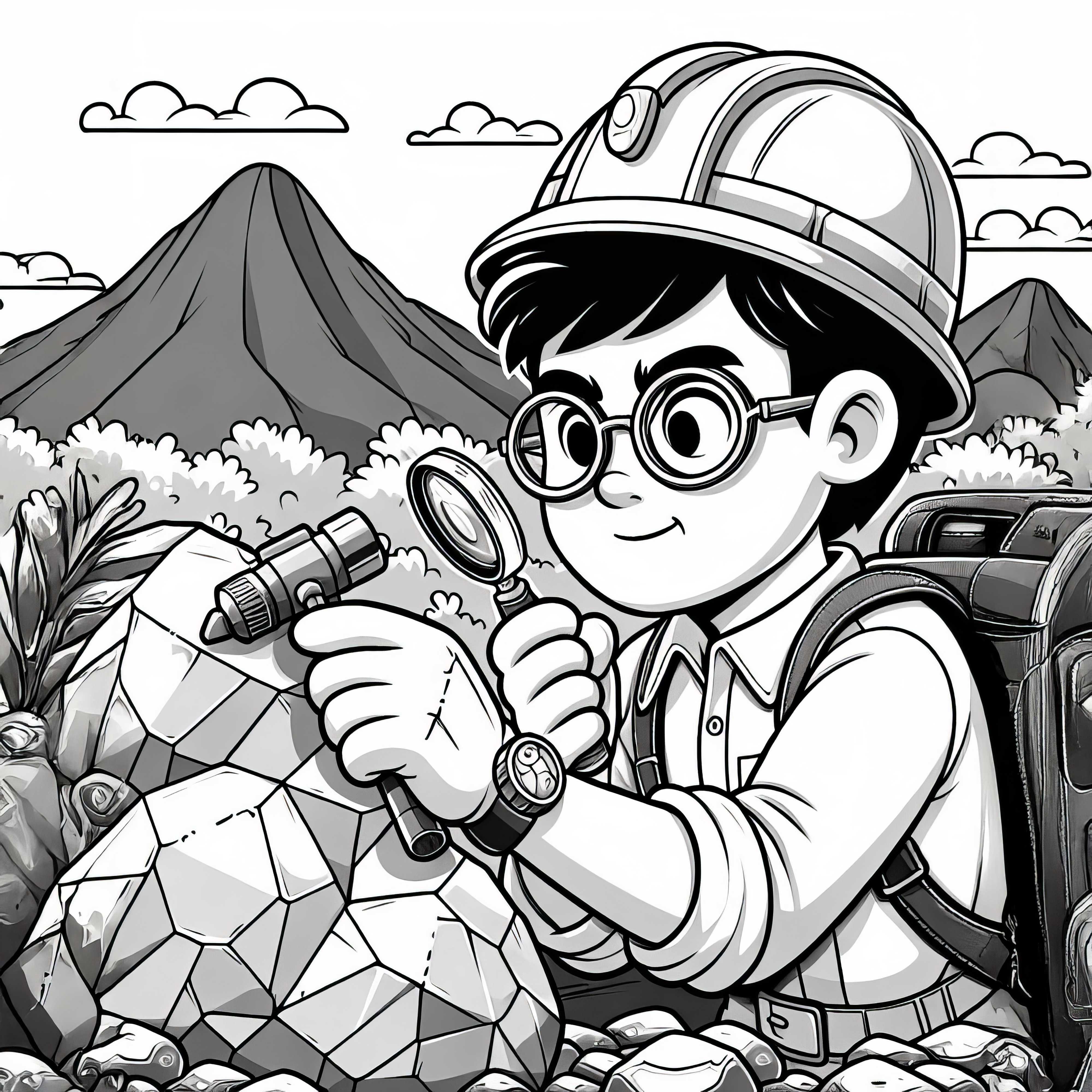 Geologe untersucht Steine mit Lupe – Malvorlage einfach kostenlos