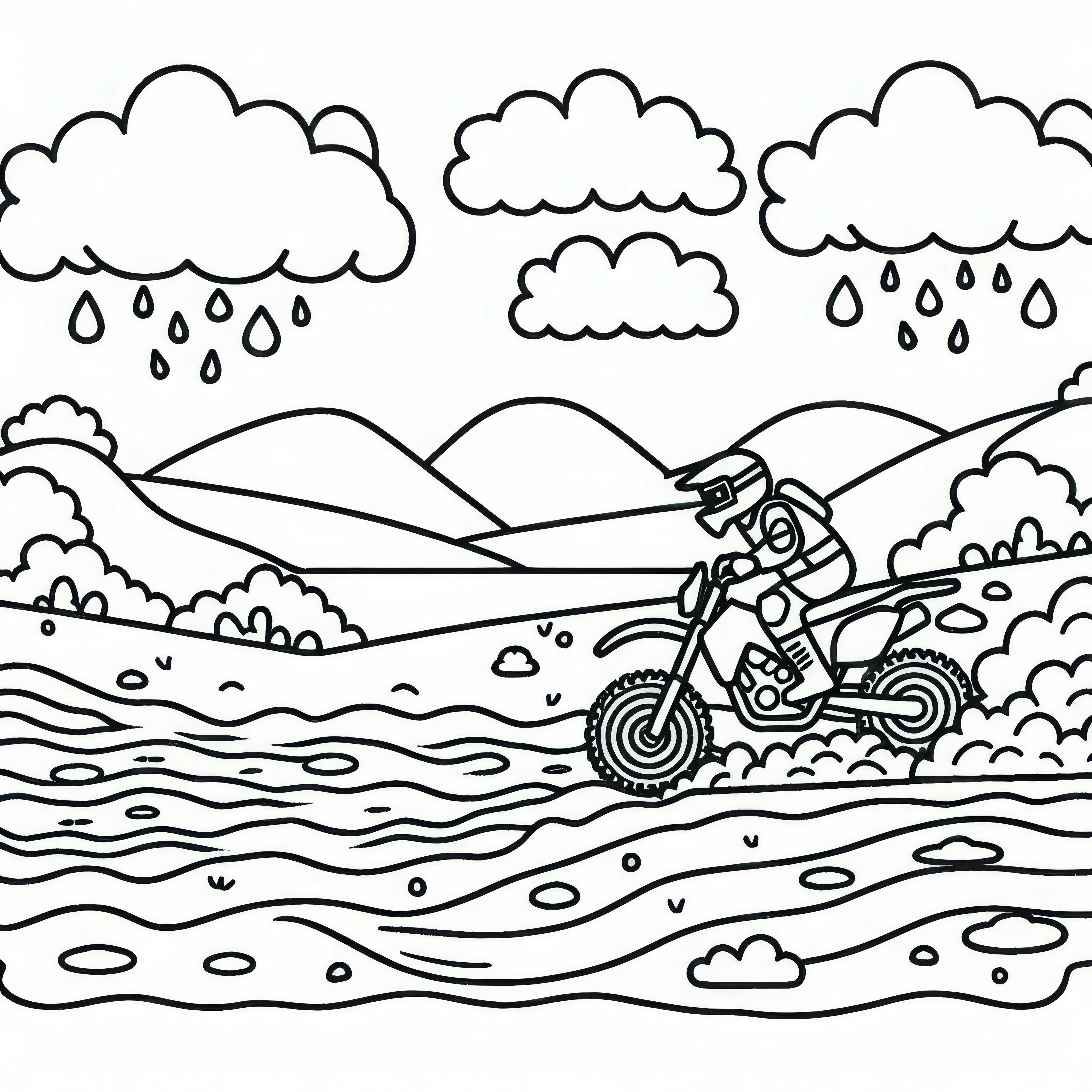 Fahrer überquert beim Motorradsport einen schlammigen Hügel – Malvorlage gratis