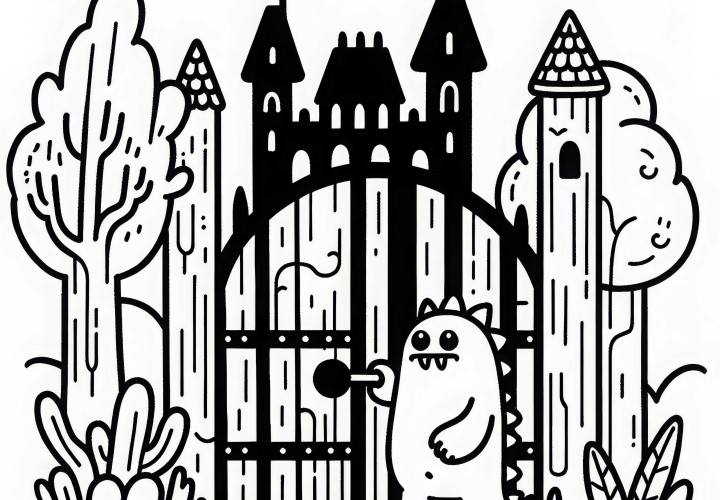 Monster bewacht das Tor zu einer verborgenen Welt - Ausmalbild zum Download (Kostenlos)