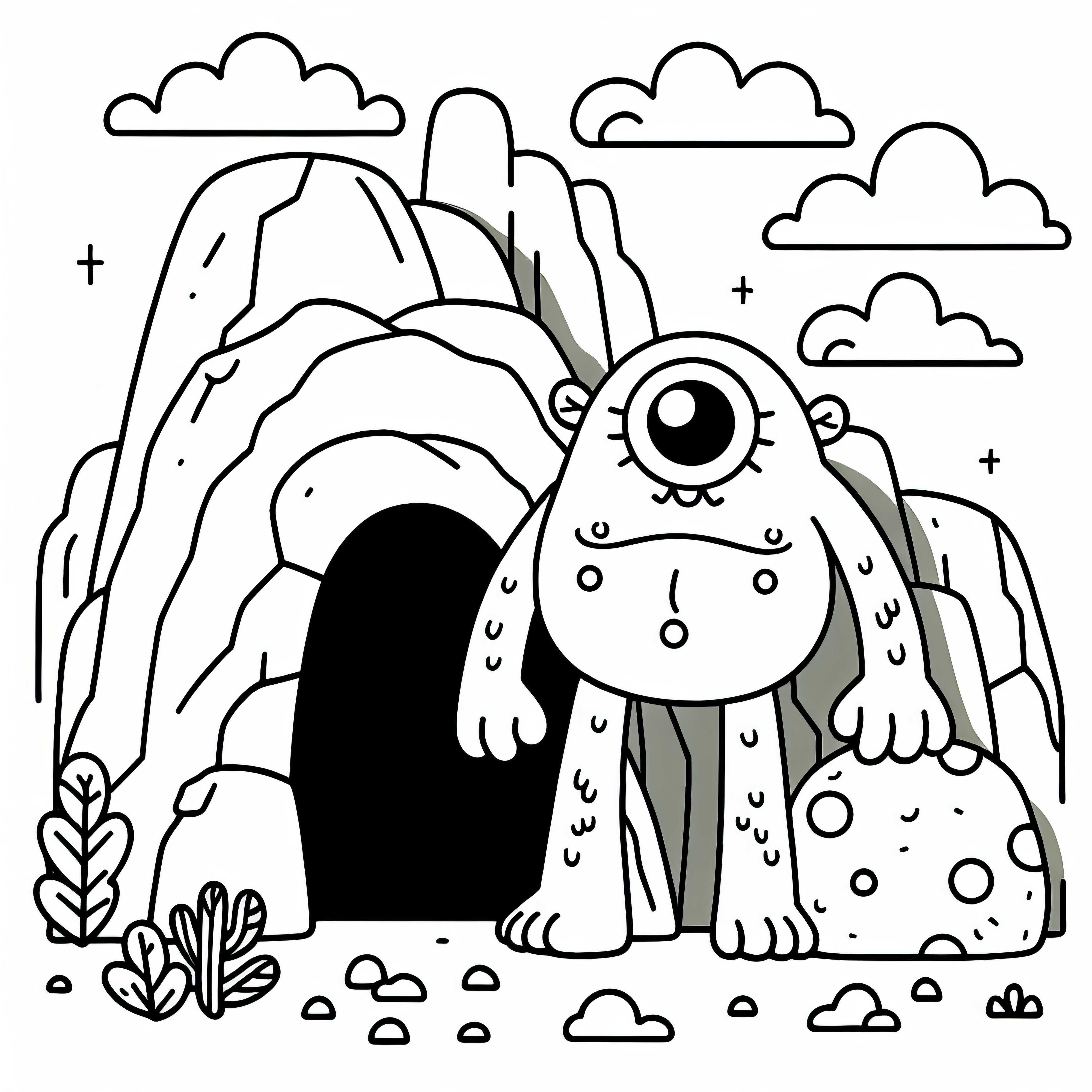 In diesem aufregenden Ausmalbild siehst du einen Zyklopen, der eine Höhle bewacht und dabei von einem großen Felsblock als Tür geschützt wird. Diese Malvorlage eignet sich ideal für Kinder und kreative Köpfe jeden Alters. Du kannst das Bild kostenlos herunterladen und es sowohl ausdrucken als auch online ausmalen. Egal, ob du es eher traditionell mit Stiften oder digital mit einem Grafikprogramm machst – du kannst deine Fantasie voll entfalten! Lade dir jetzt das Ausmalbild herunter und beginne mit dem Ausmalen.