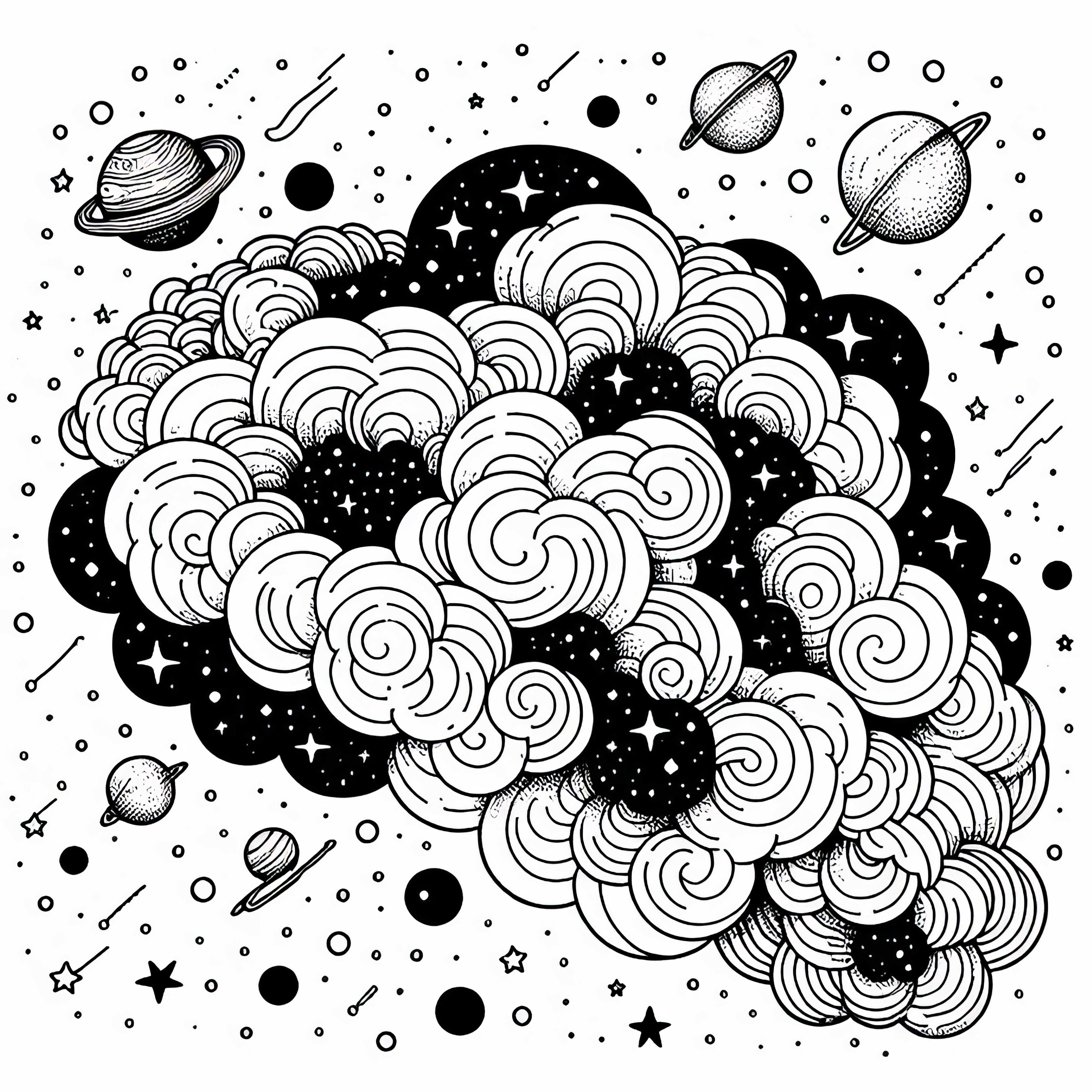 Sternhaufen in einer Galaxie – Malvorlage zum Ausmalen