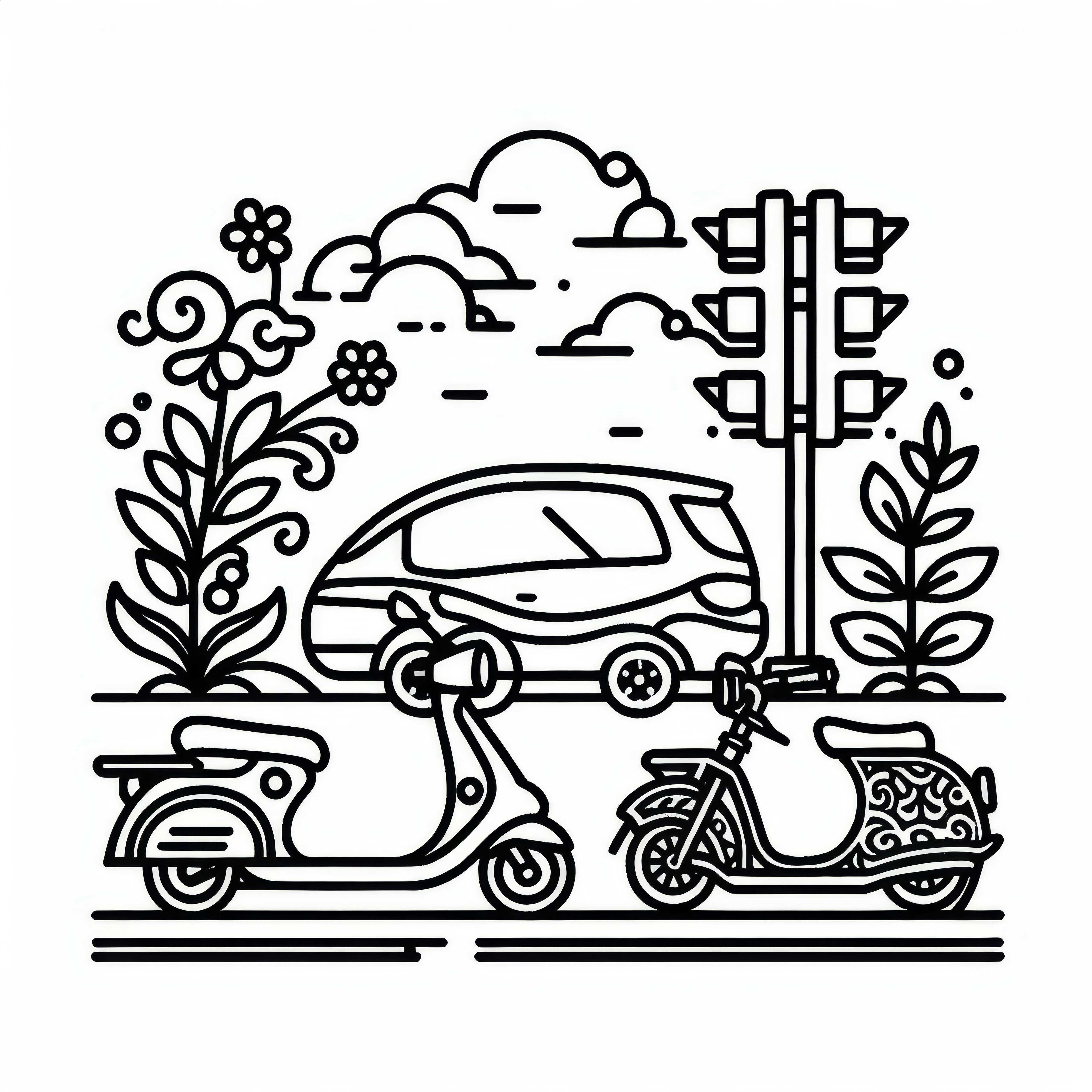 Autoverkehr an Ampelkreuzung als Ausmalbild kostenlos