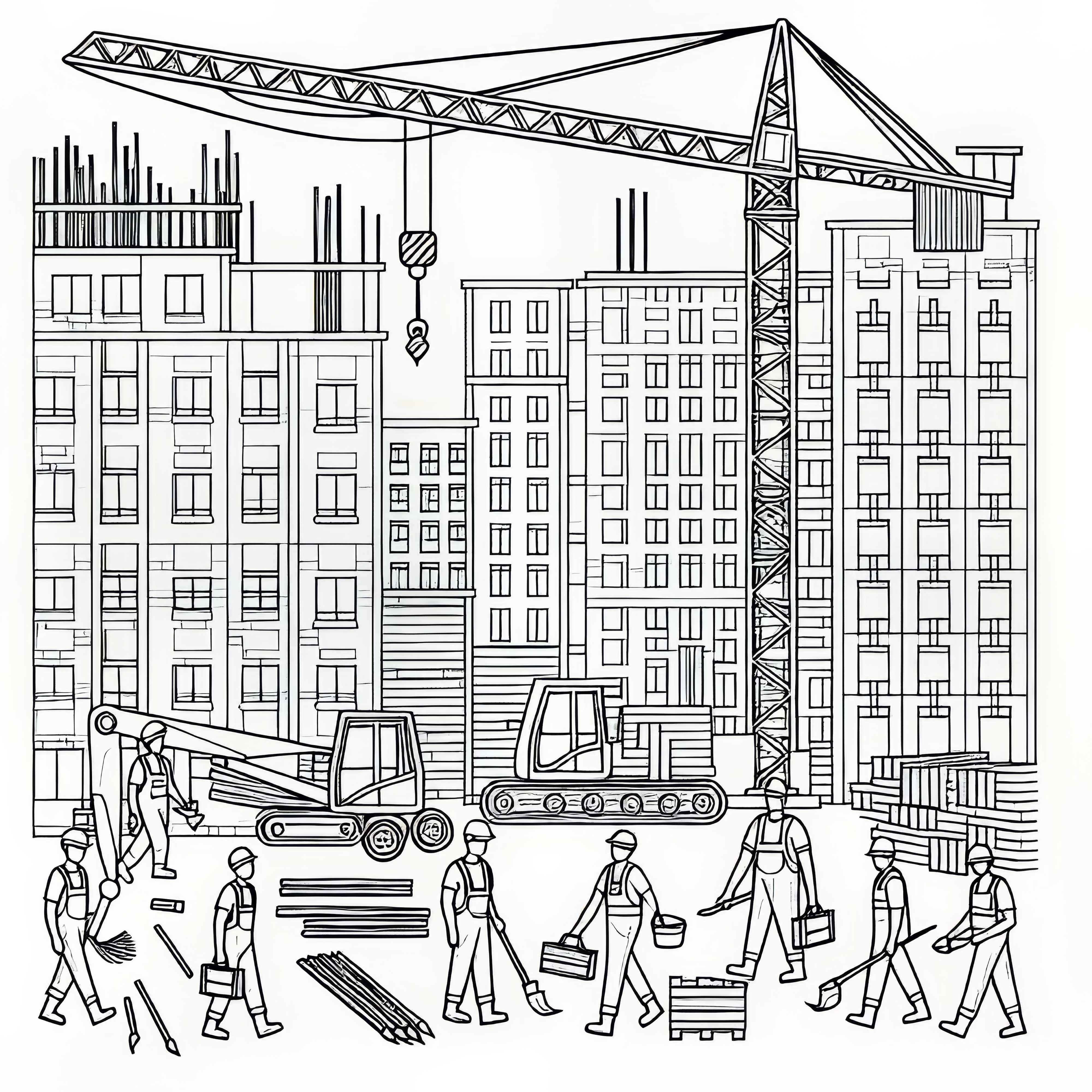 Kran auf Baustelle für Hochhaus – Ausmalbild kostenlos