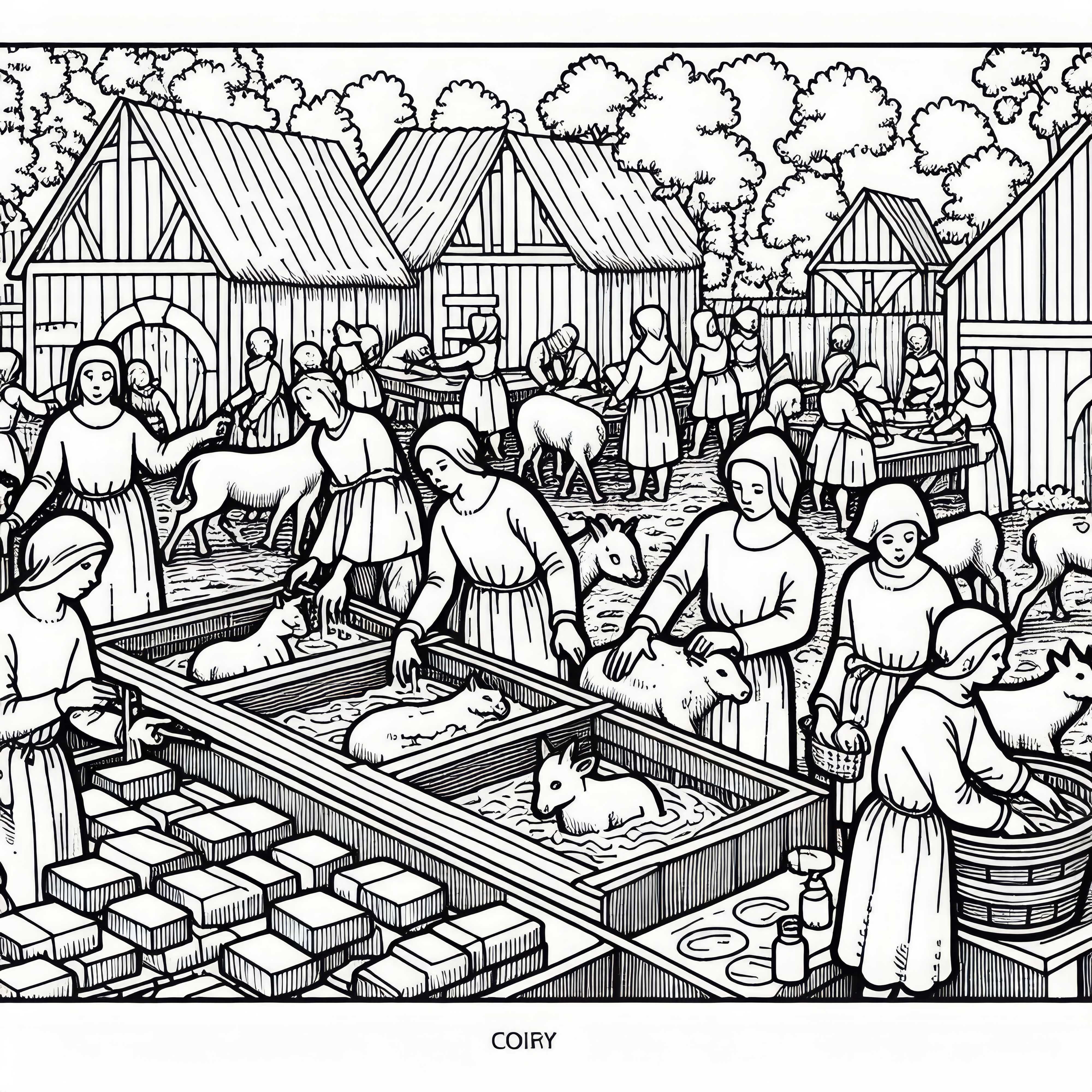 Kinder tragen frische Kleidung zur Wäscherei – Malvorlage Schwarzer Tod Gratis