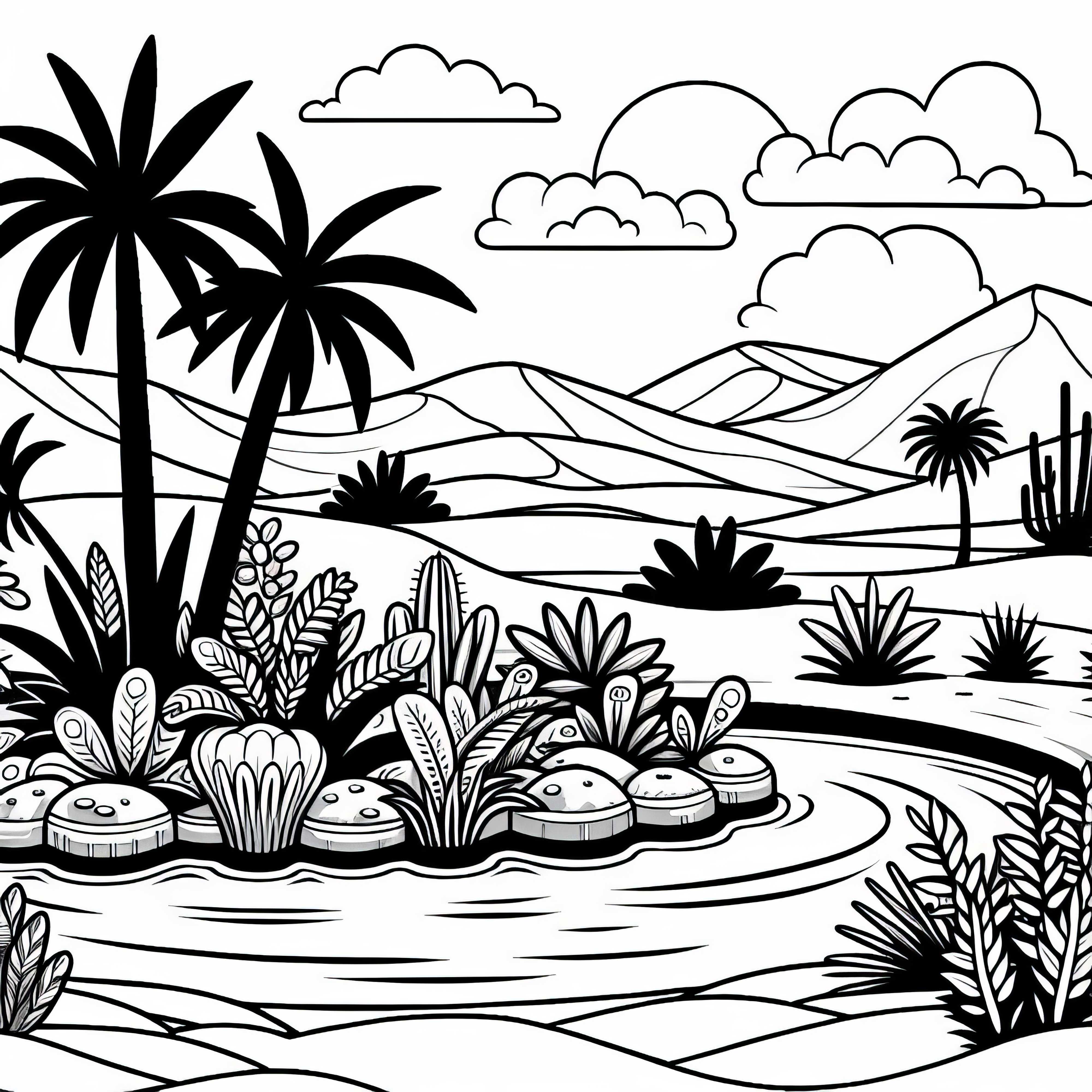 Oasen-Ausmalbilder: Landschaftsmotive kostenlos ausmalen – weitere Inhalte
